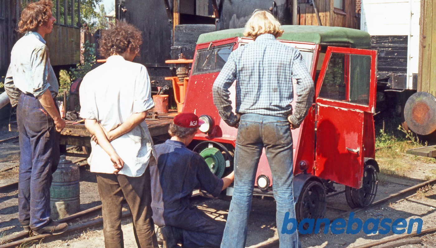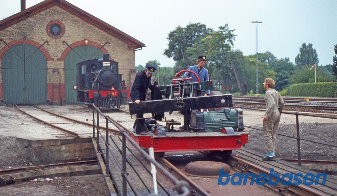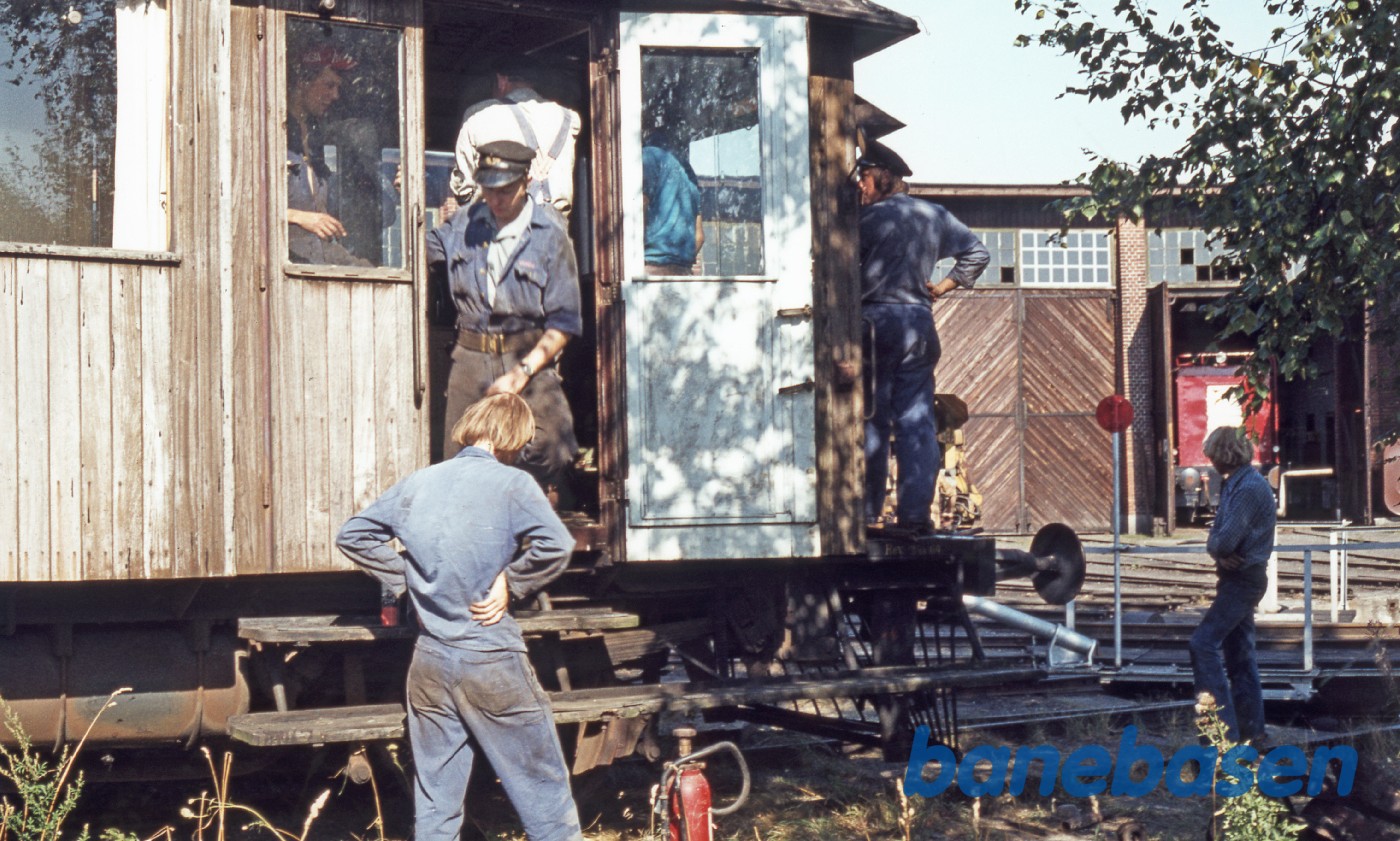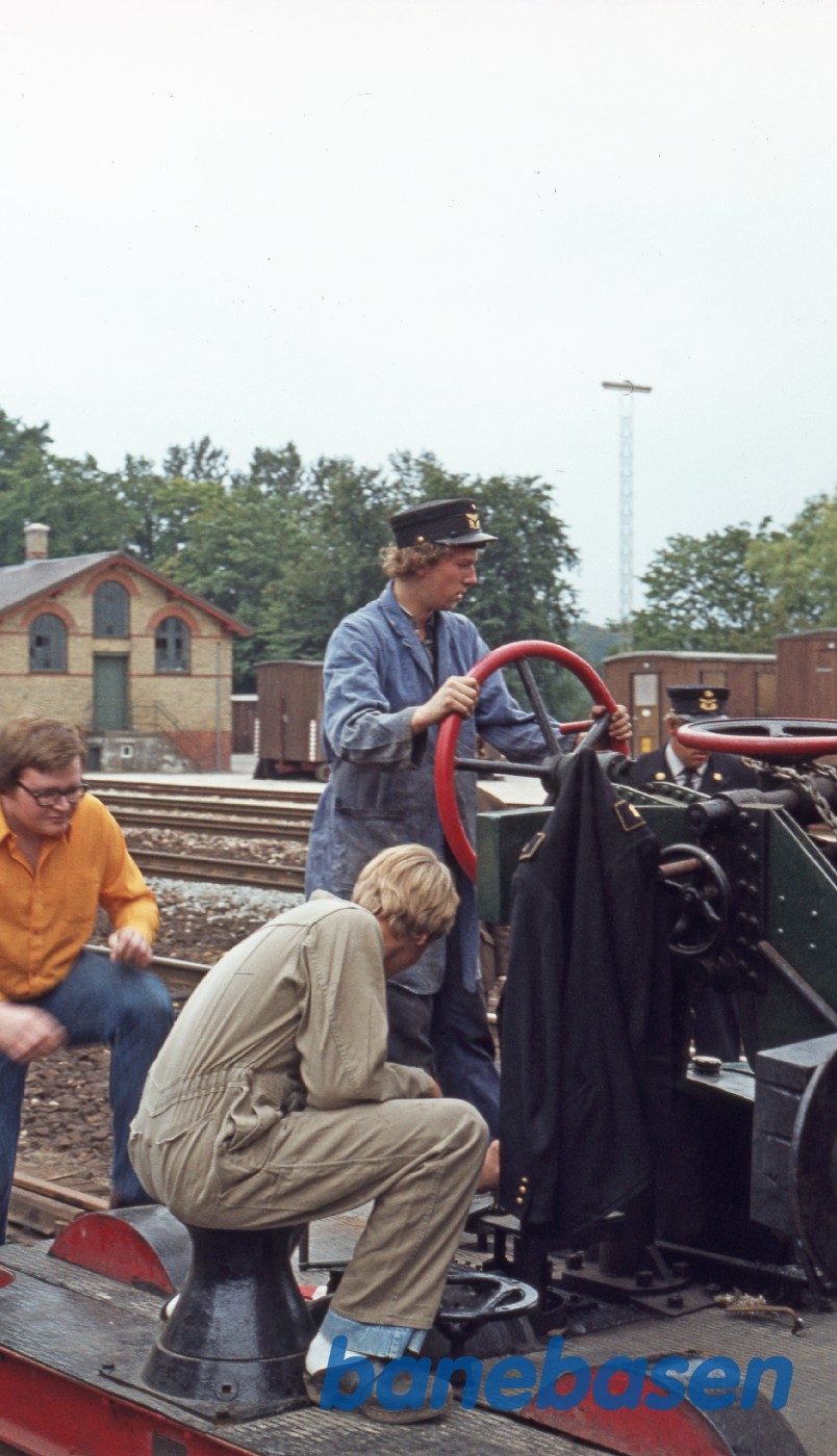 Motiv:Et af klubbens medlemmer betjener sporskiftet på Ørholm sidespor, når der skal krydses med det ordinære tog