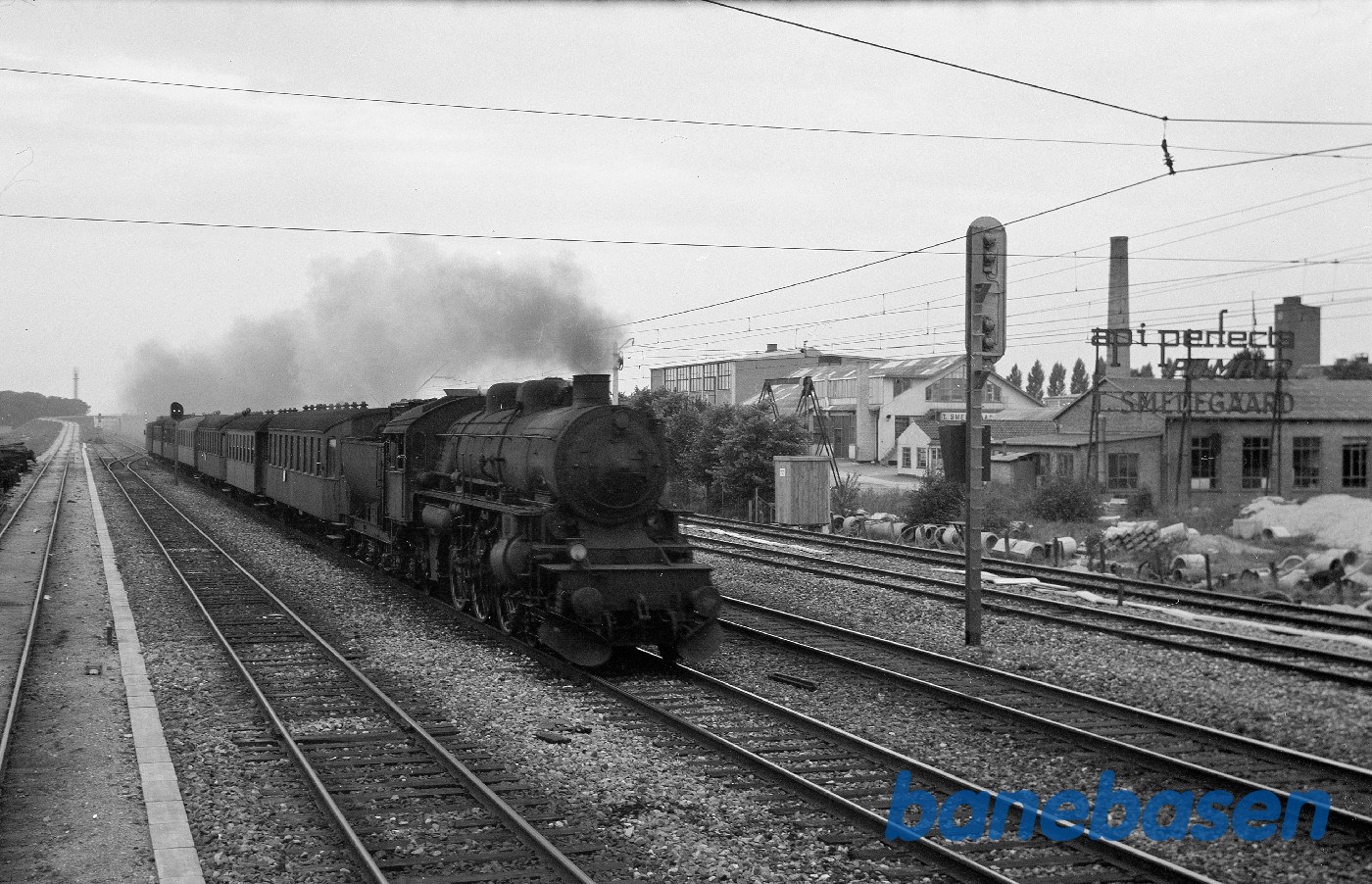 Motiv: | Gennemkørende iltog pass. Glostrup. De gennemgående, toakslede vogne er til Østsjællandske Jernbane |