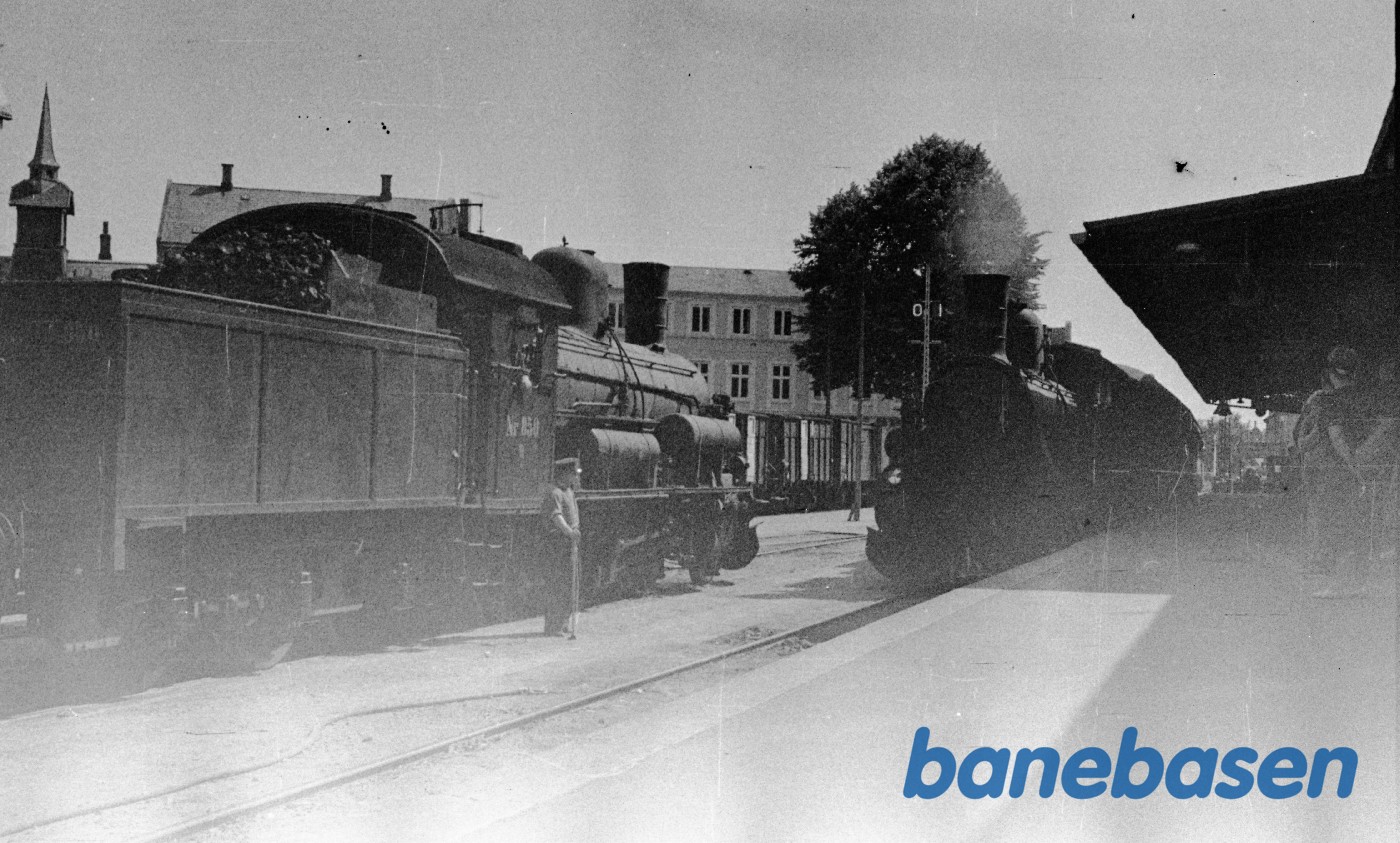Motiv: | MY med "Nordexpres" møder H-maskine med godstog ved Render |