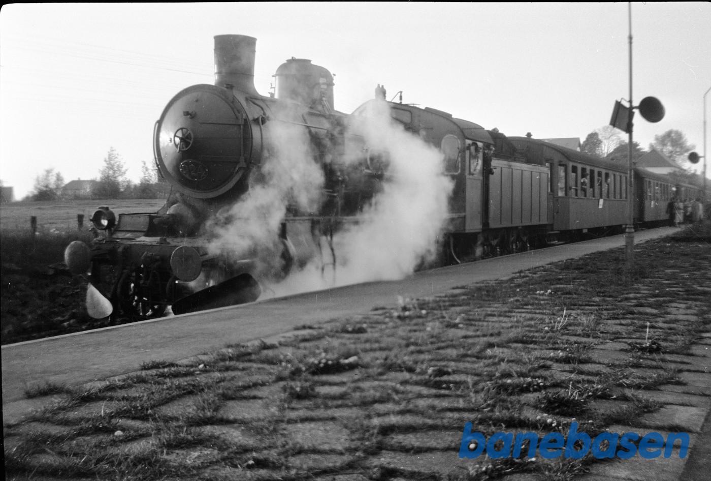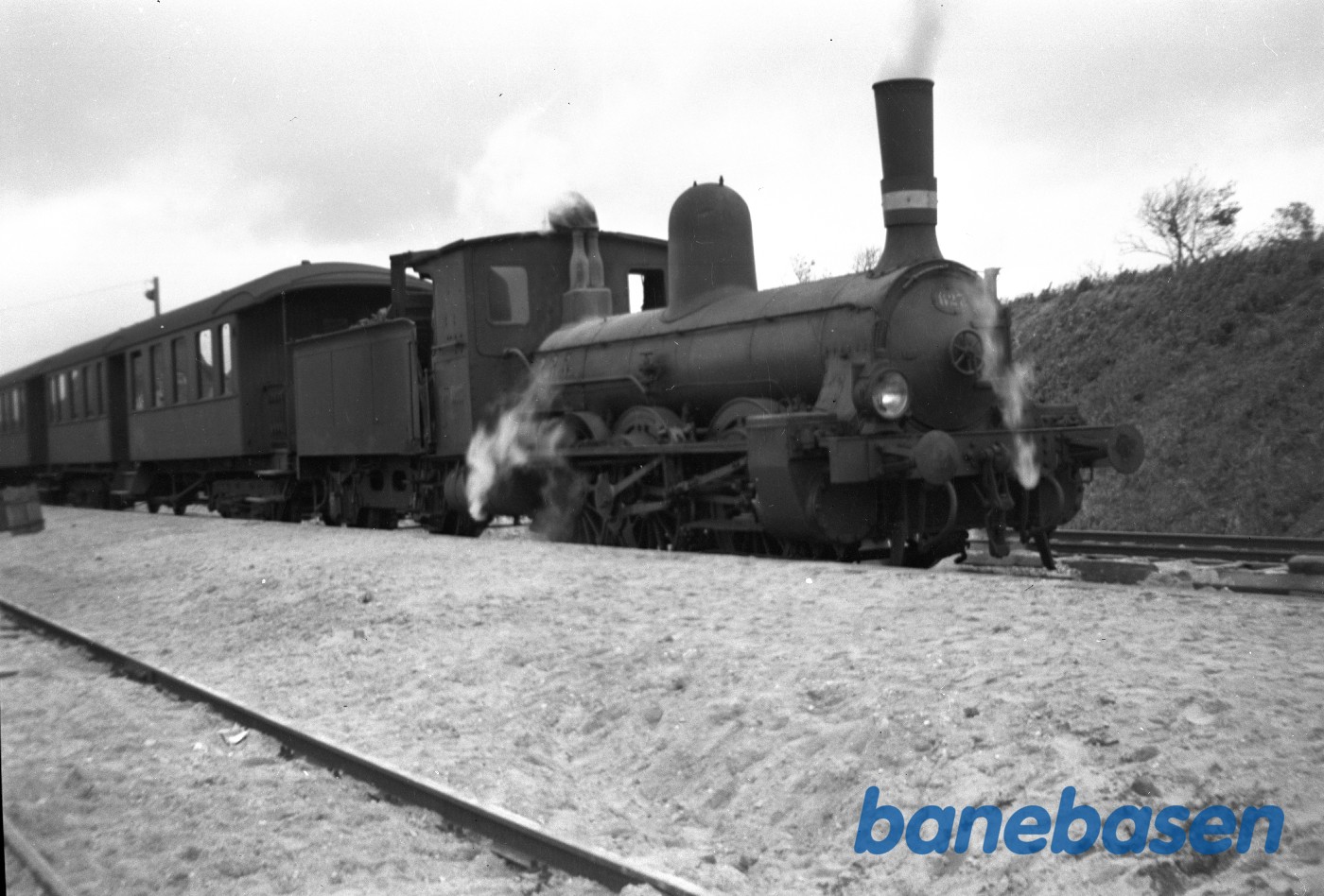 Motiv: | DSB F 479. Det blev i 1969 solgt til Amagerbanen. Loko har også stadig lanterne og skilte i behold, og der strømmer damp ud for neden |