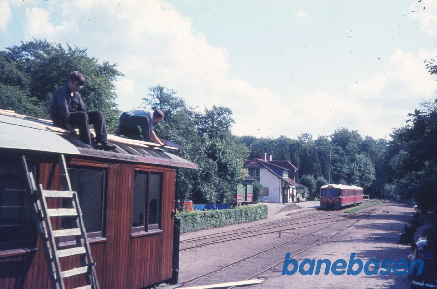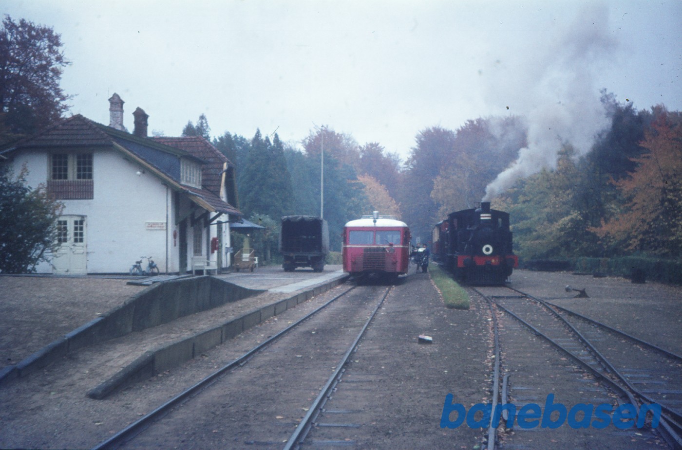 Motiv: | Skinnebusser på vej ind på stationen fra Ålsgårde |