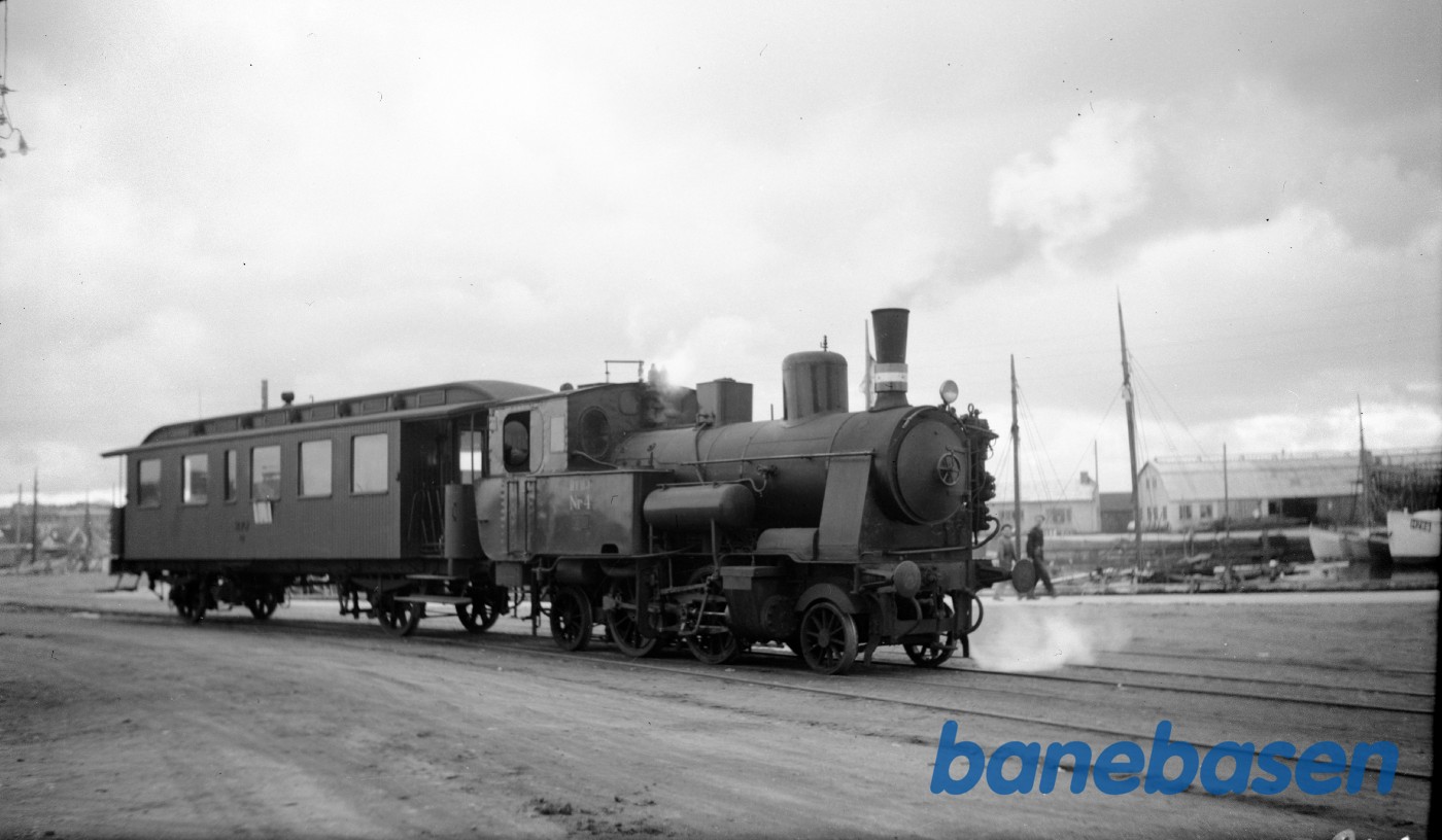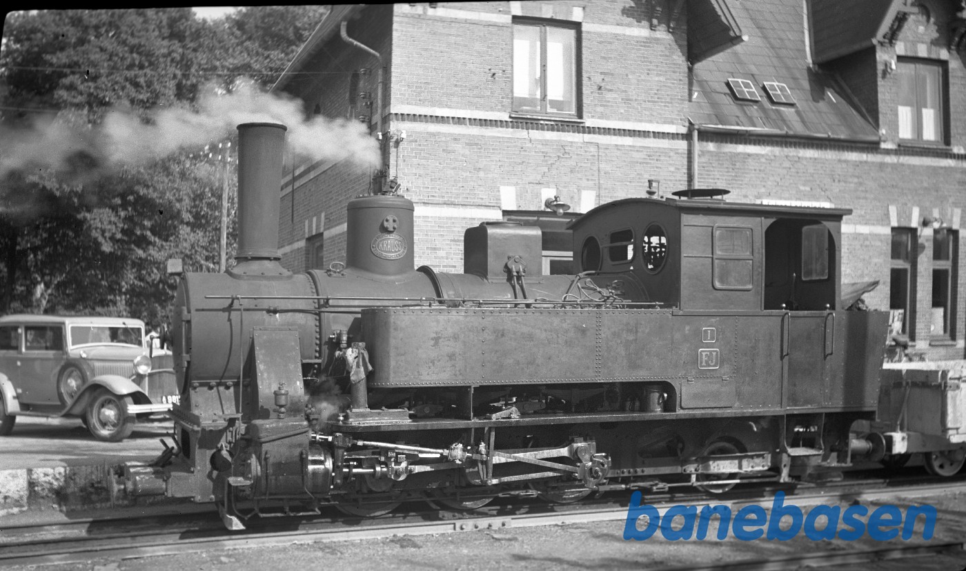 Motiv: | Damplokotiv HFHJ Nr 4 med en enkel vogn på Hundested vogn. |