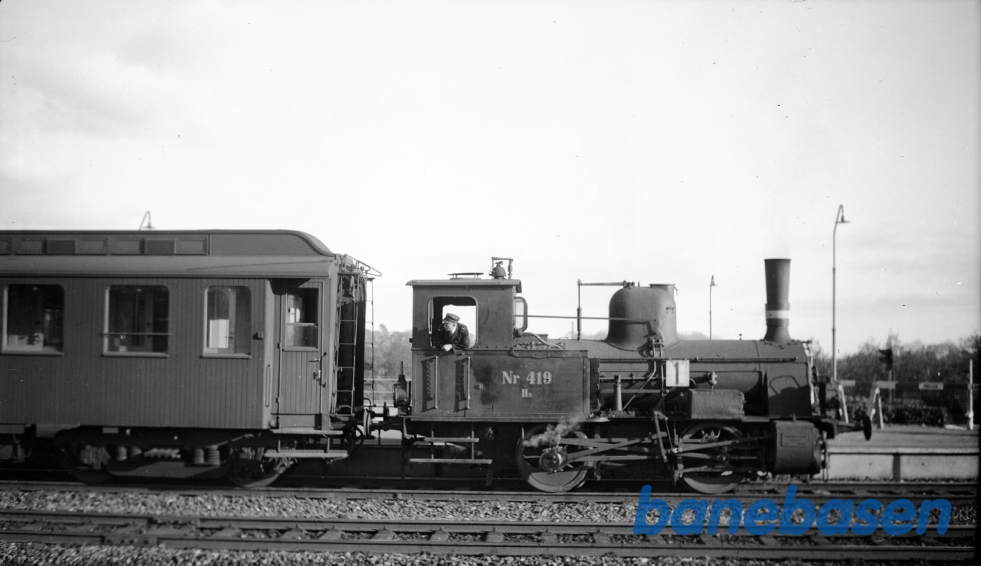 Motiv: | Damplokomotiv HFHJ nr 8 med personvogn på Hillerød st. |