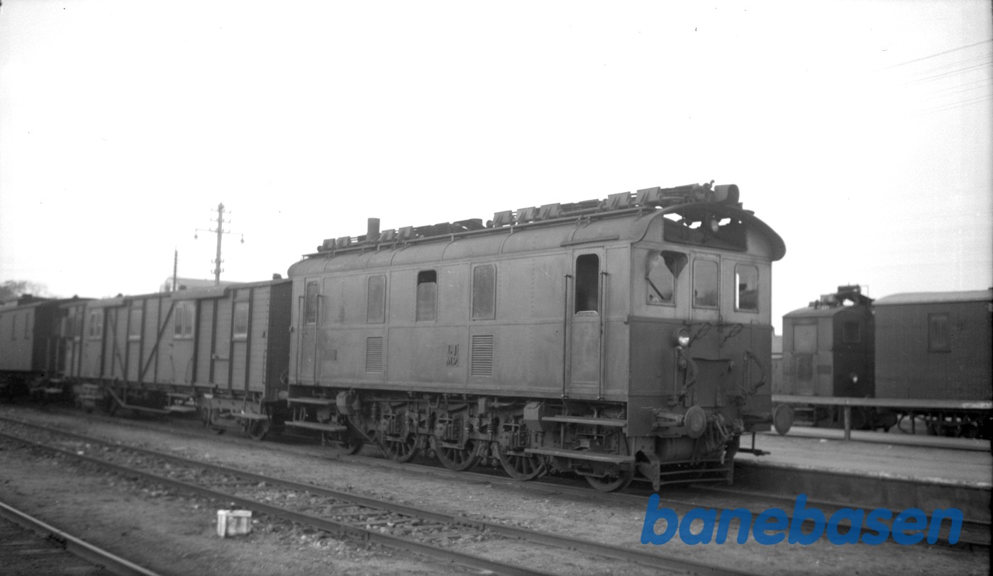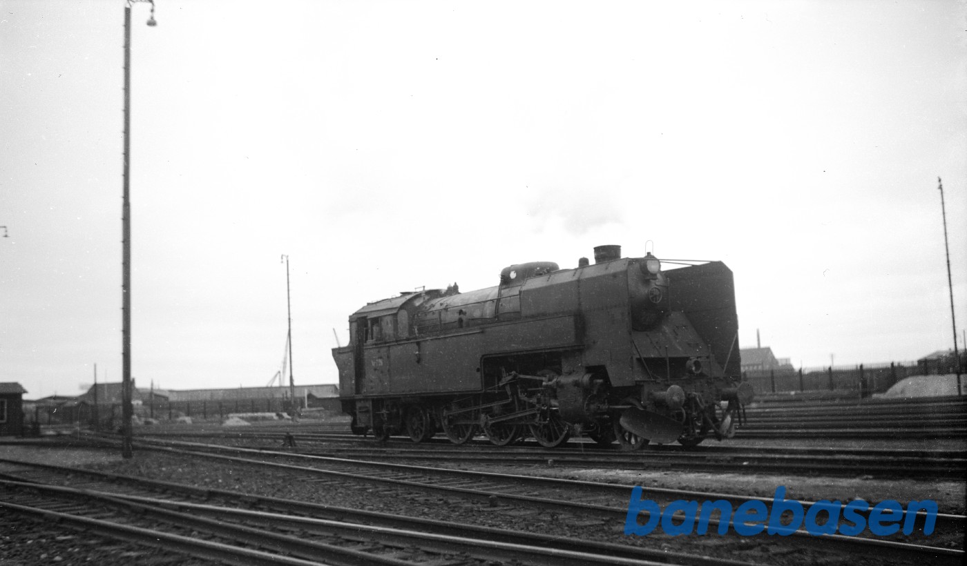 Motiv: | Damplokomotiv E 981 i kulgården ved remisen i Nykøbing F |