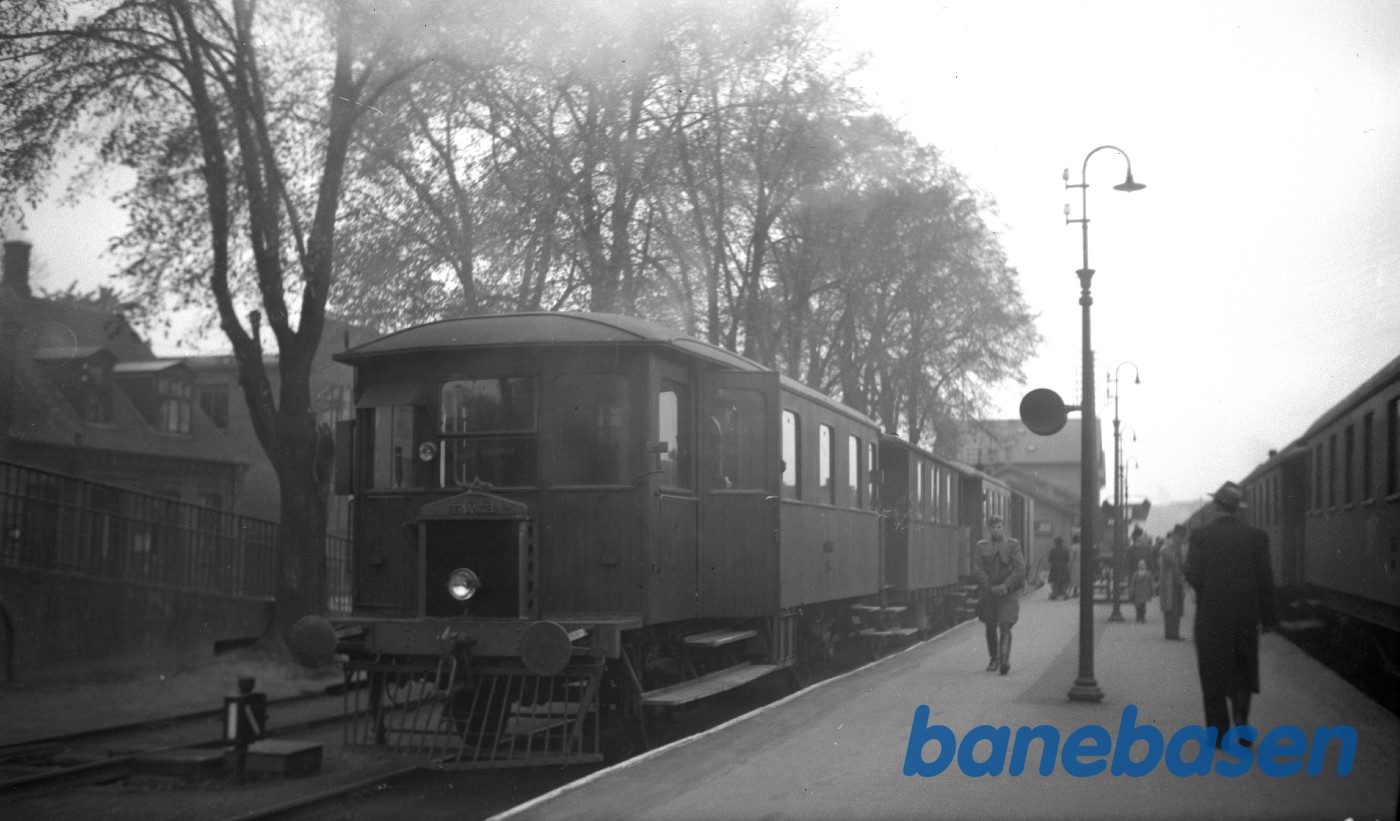Motiv: | Motorvogn ØSJS M 1 holder på Faxe Ladeplads station |