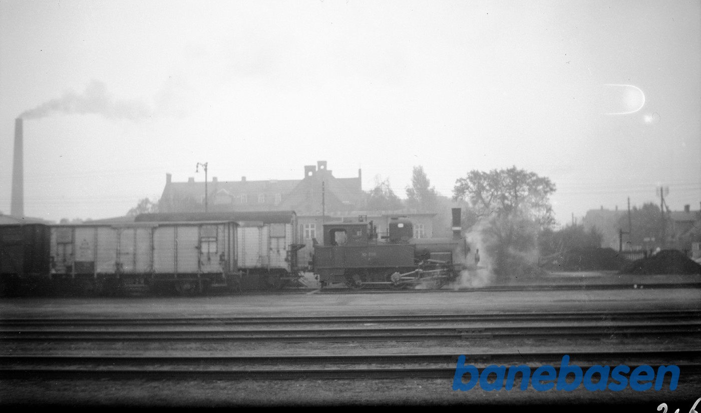 Motiv: | Dampokomotiv LJ 20 rangerer på Nakskov station |