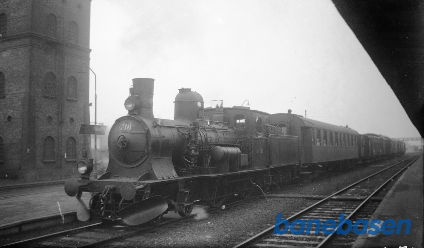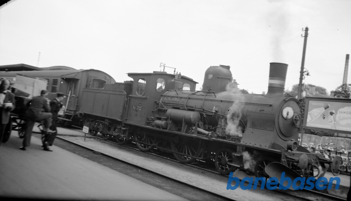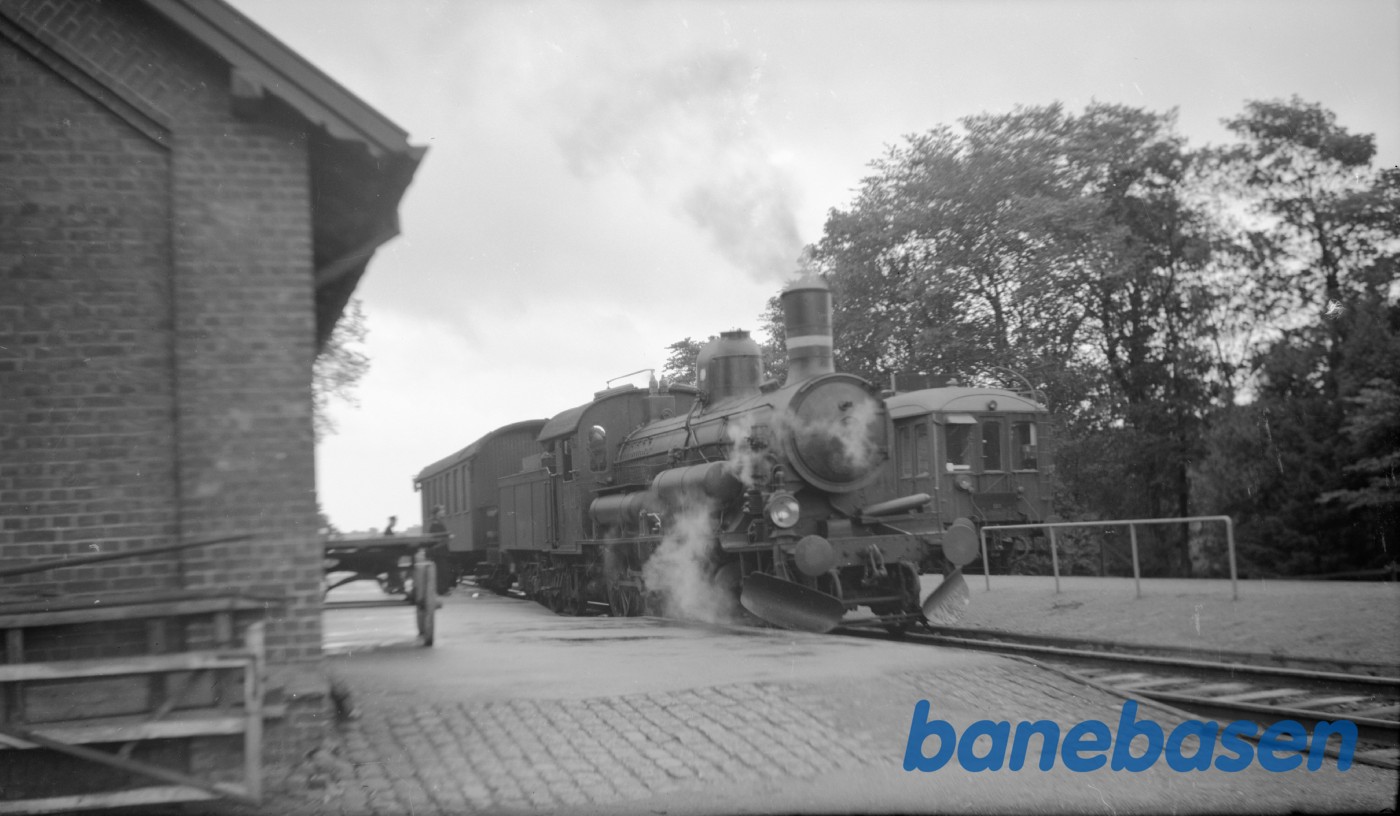 Motiv: | Damplokomotiv C 712 ankommer til Nykøbing F med særtog. |
