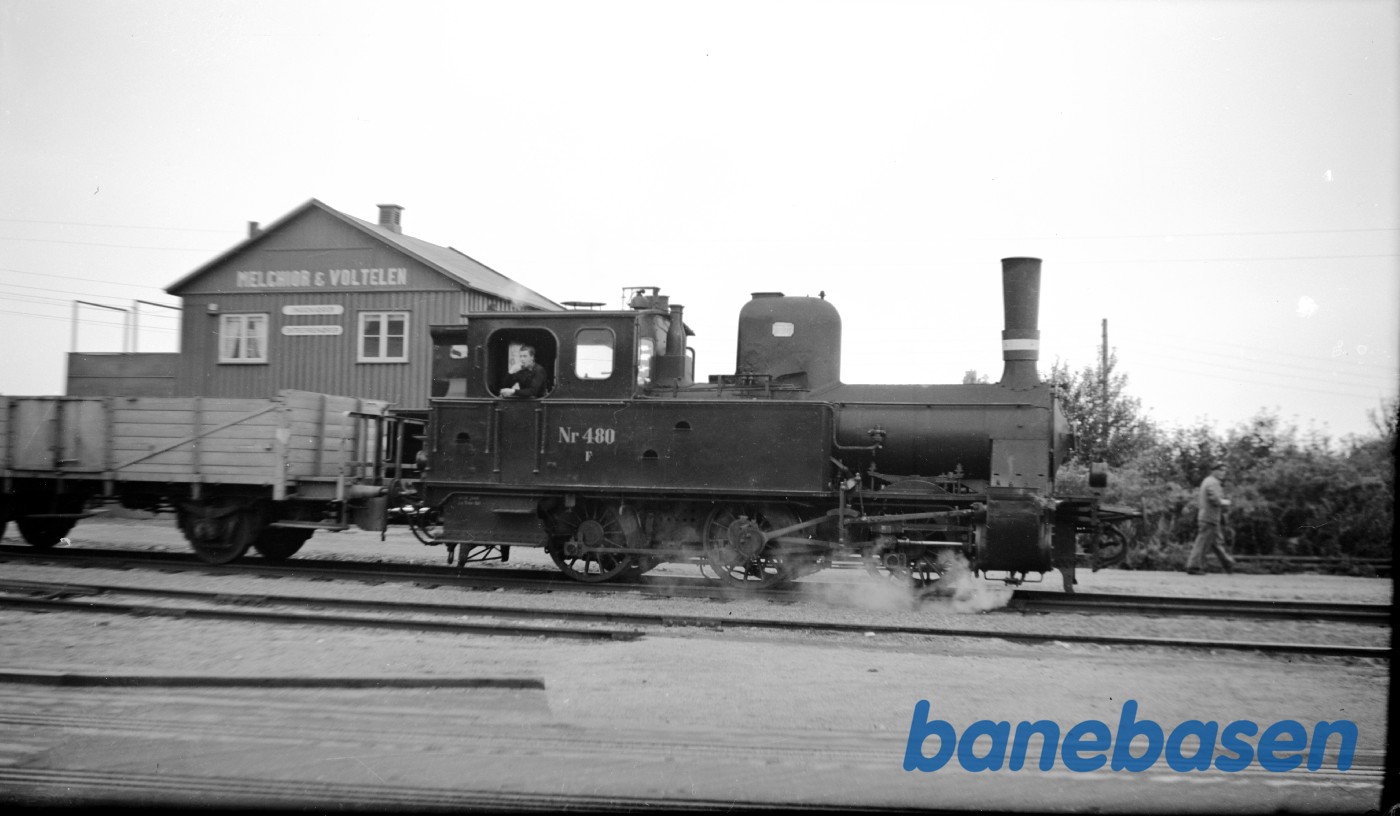 Motiv: | Damplokomotiv F 480 rangerer i Gedser |