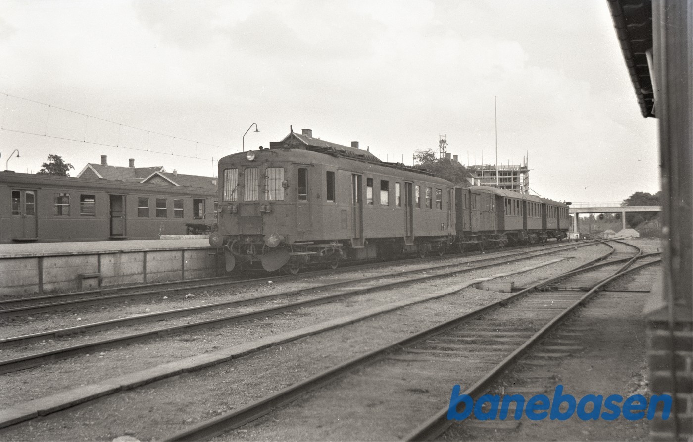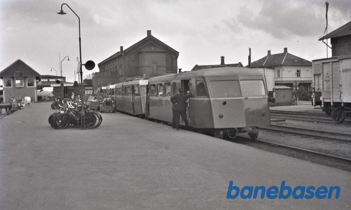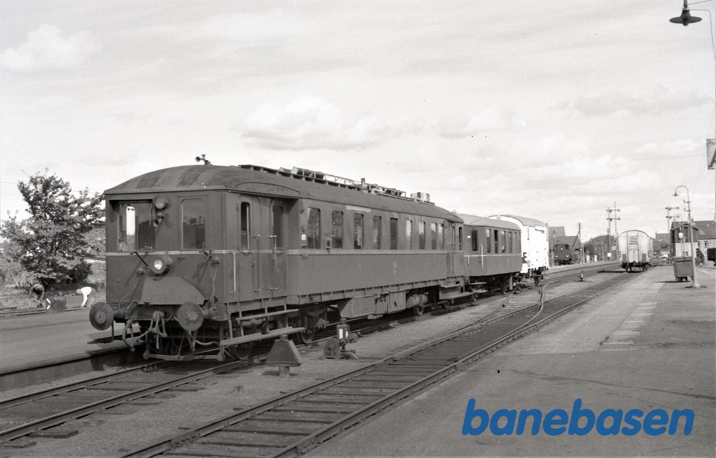 Motiv:Nykøbing SJ station med OHJ motorvogn Mo og ved siden OHJ 21