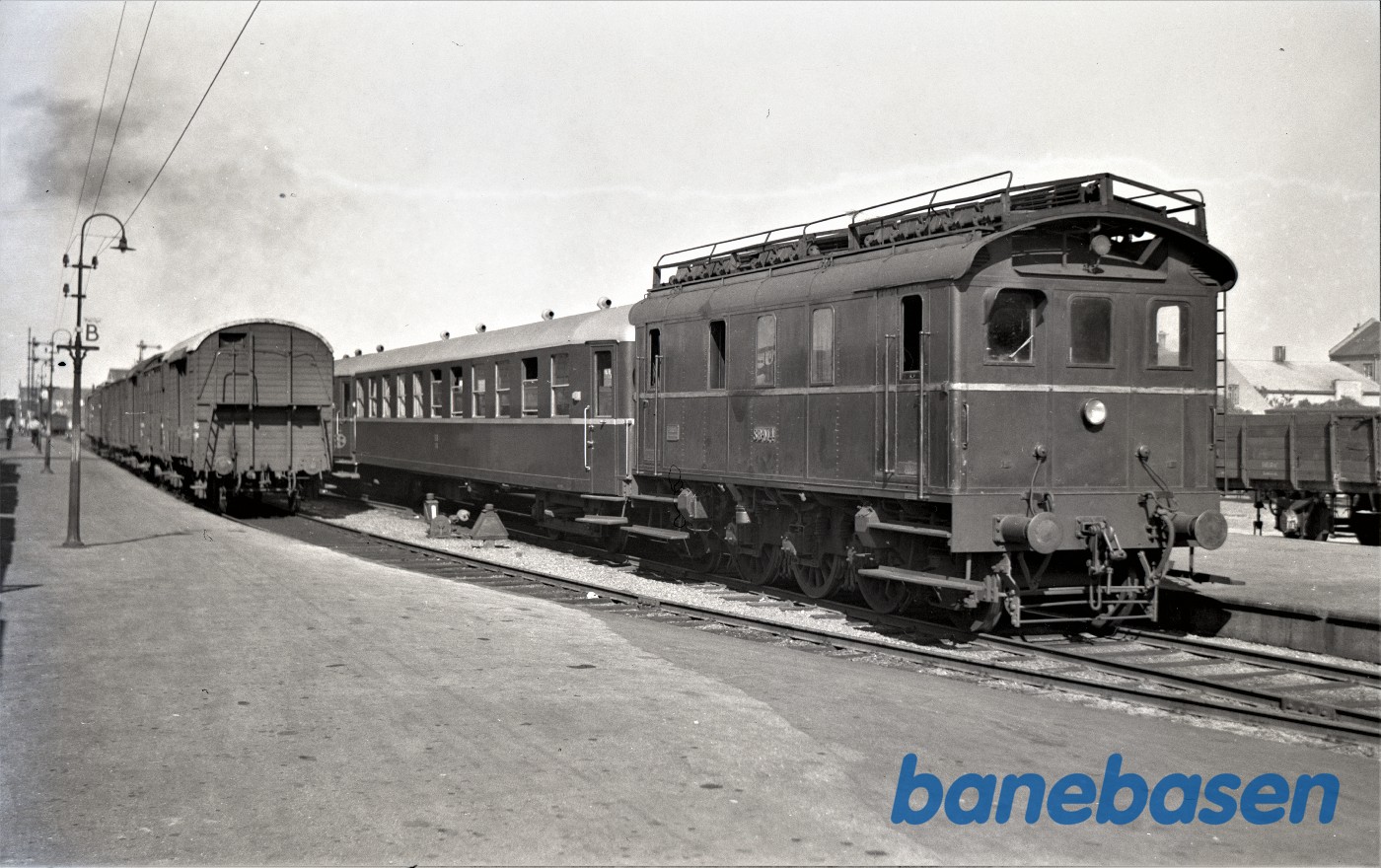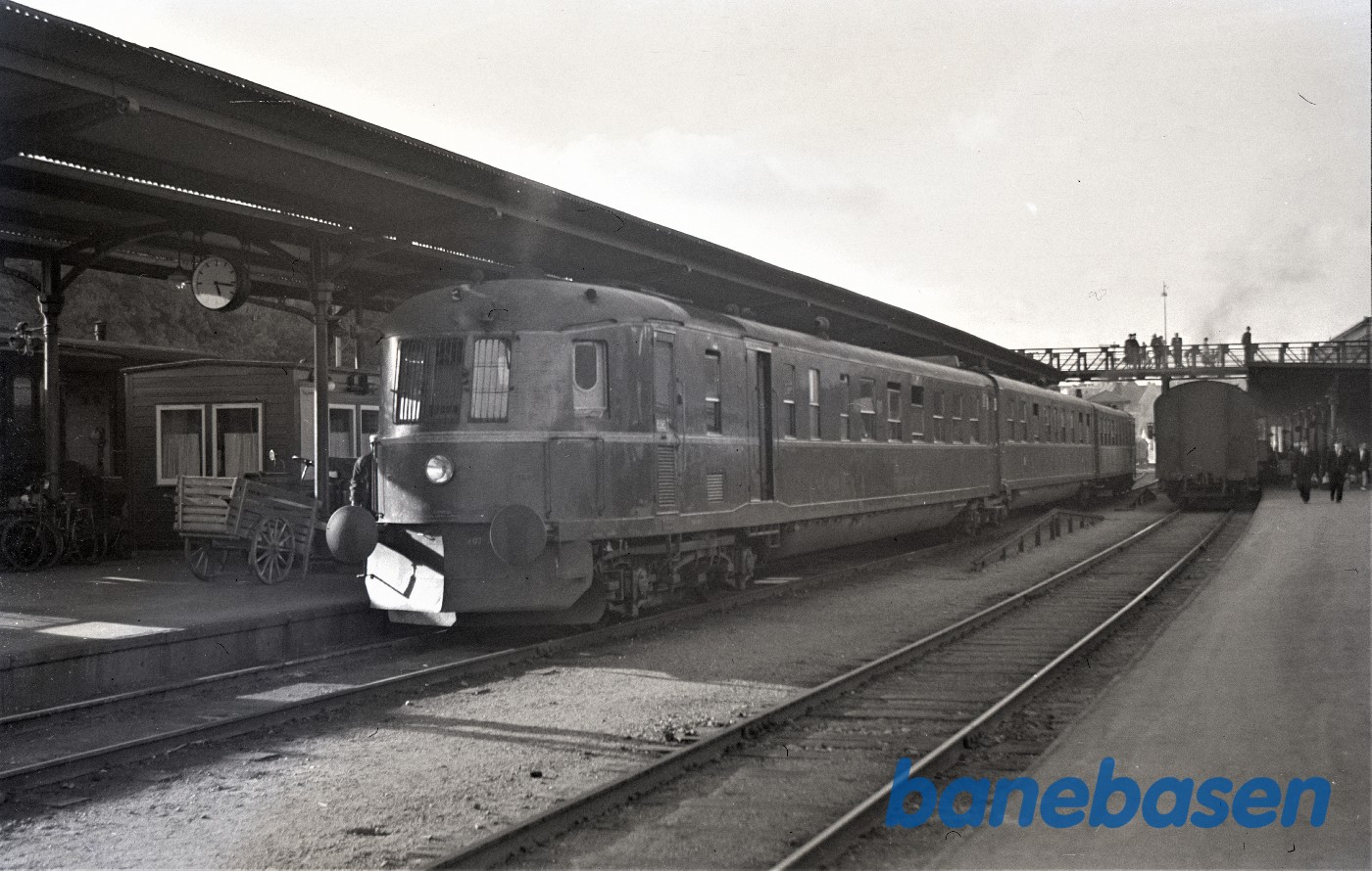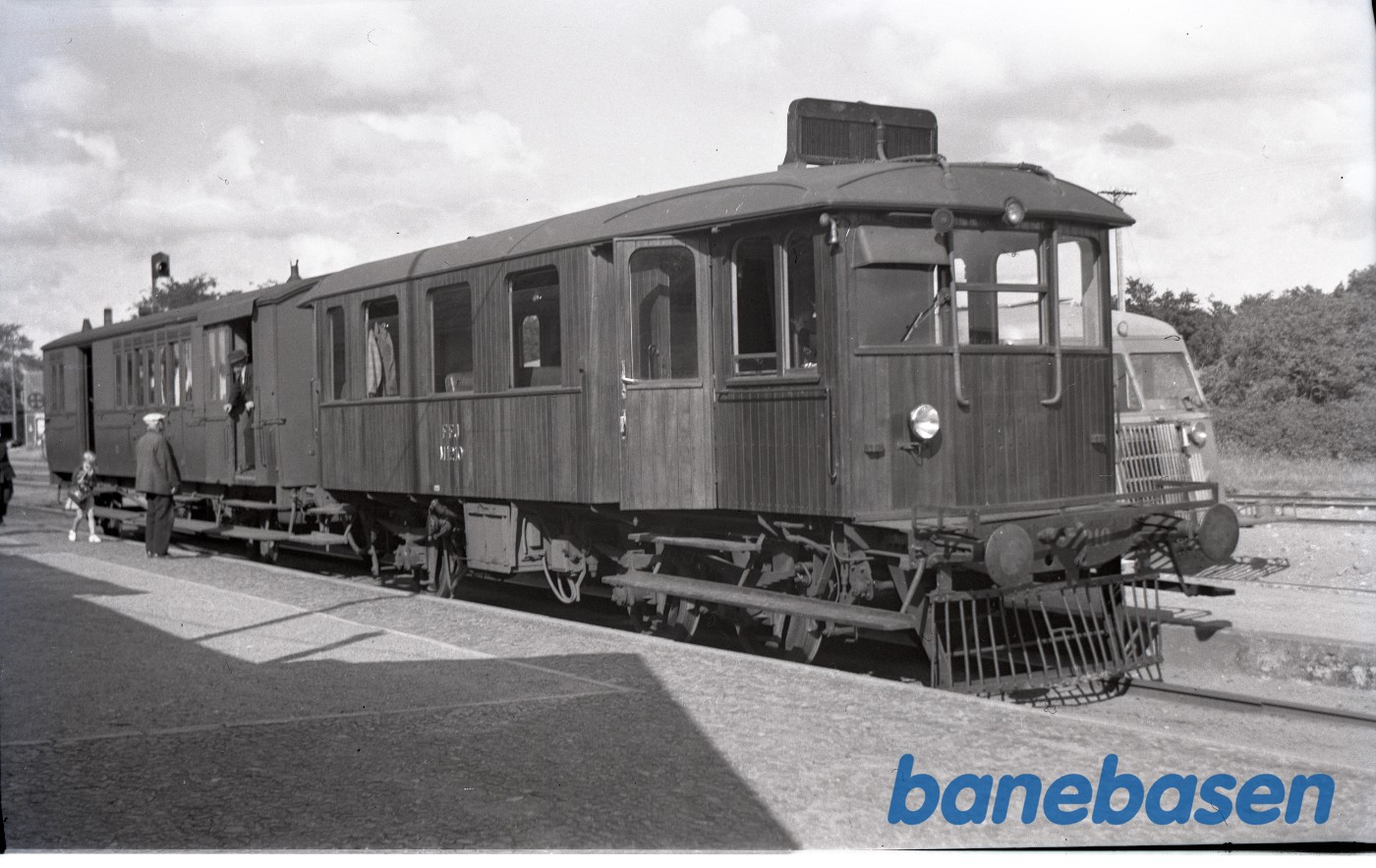 Motiv:Nykøbing SJ station med OHJ motorvogn Mo og ved siden OHJ 21