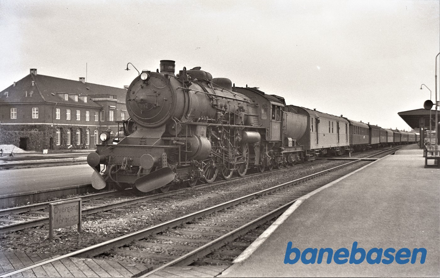 Persontog mod Aarhus med damplokomotiv ltr E holder ved perron i Horsens
