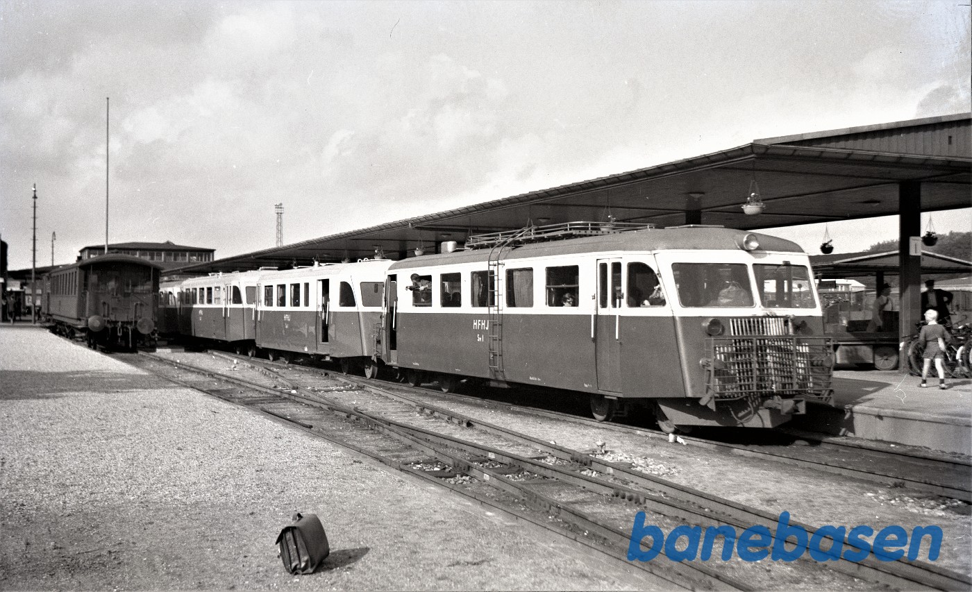 Motiv:2 motorvogne fra holder på Horsens station. Det er Triangelmotorvogne fra HV og HOJ