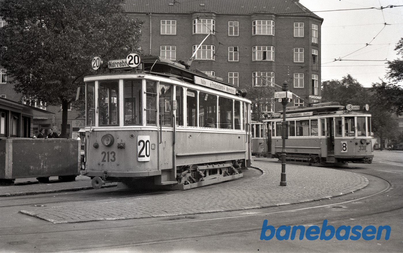 Motiv:Toftegaards plads med 2 sporvogn . Liner 18 og Linie 20