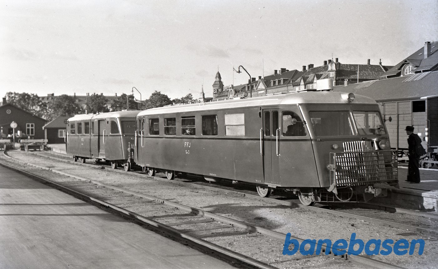 Nykøbing SJ station med OHJ motorvogn Mo og ved siden OHJ 21