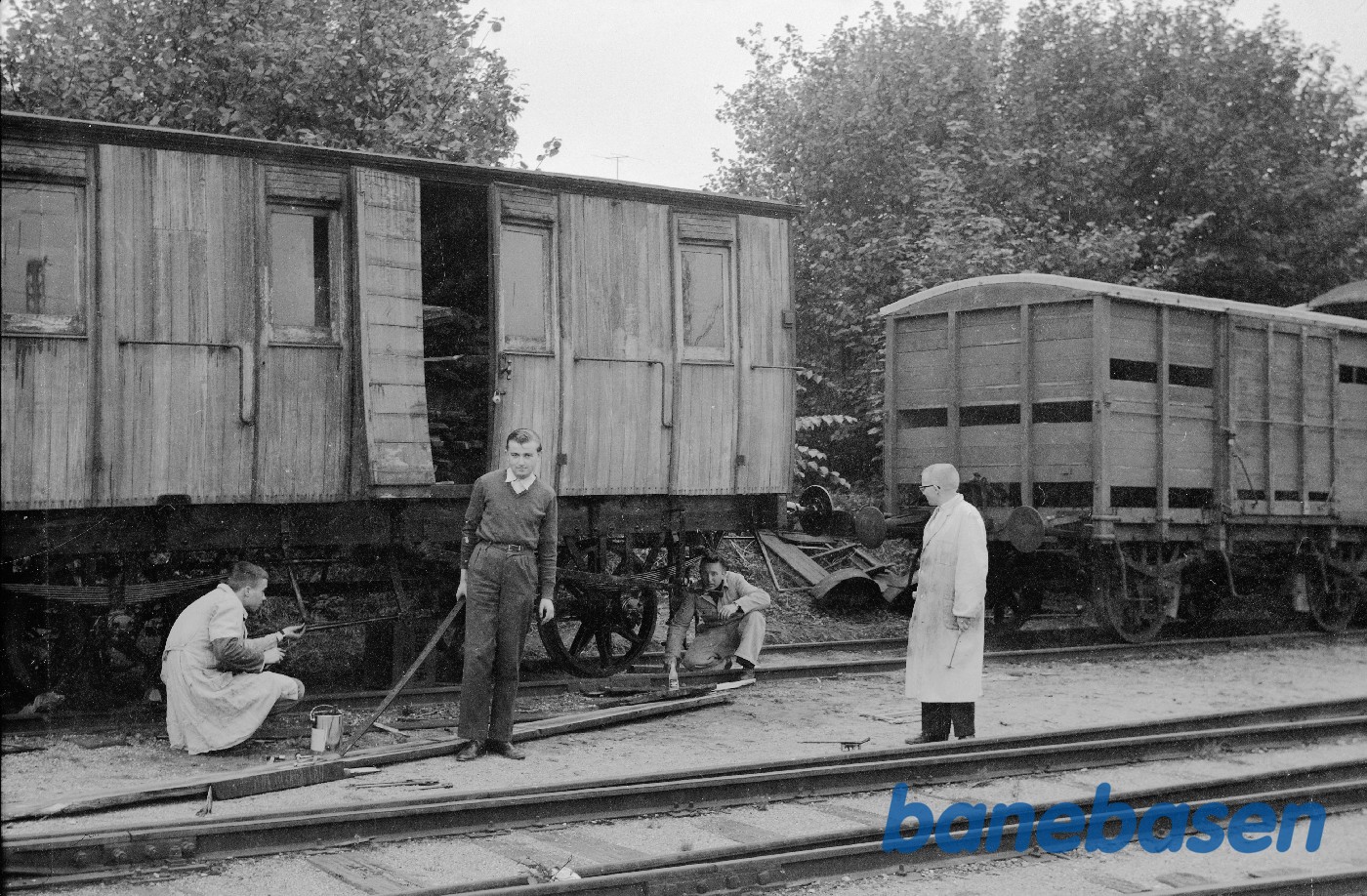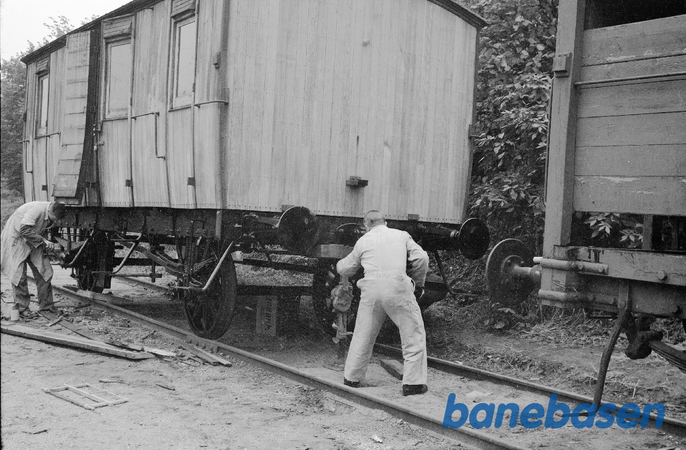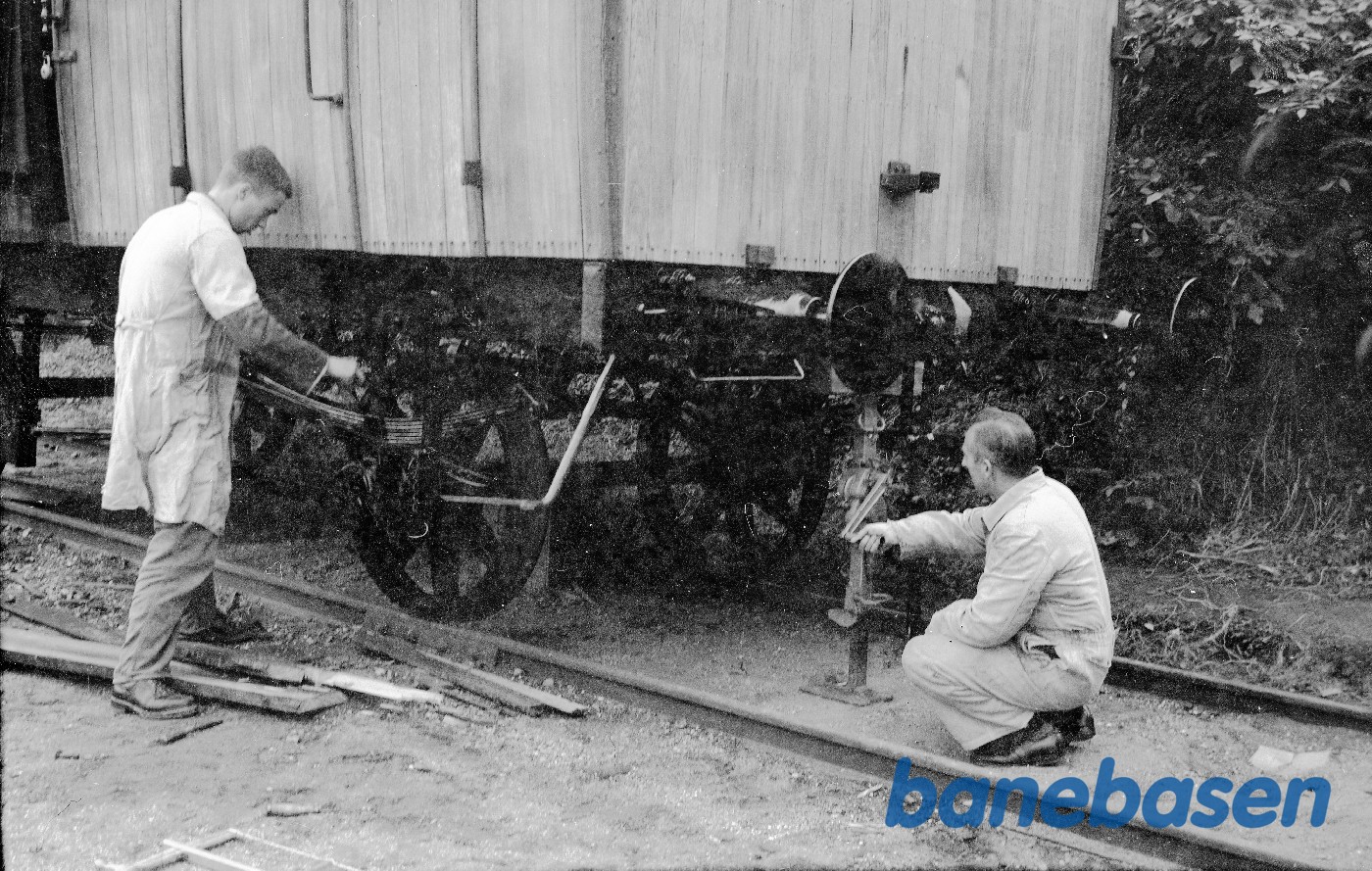 Motiv: | Lukket godsvogn ØSJS E 26, der skiftes en fjeder |
