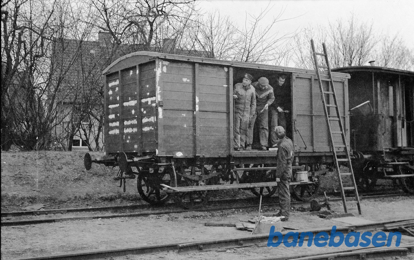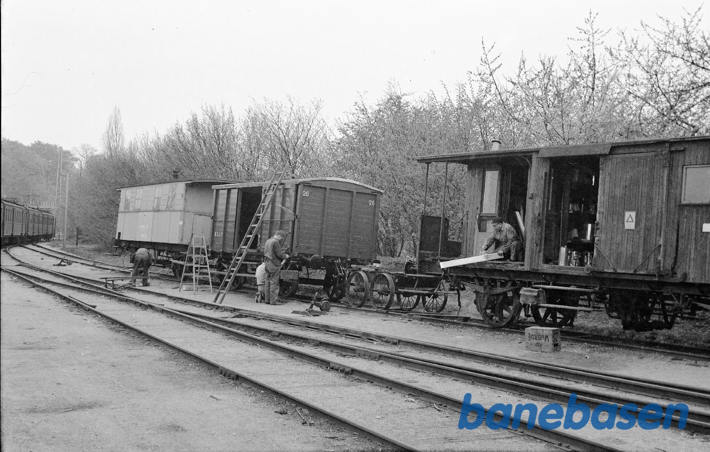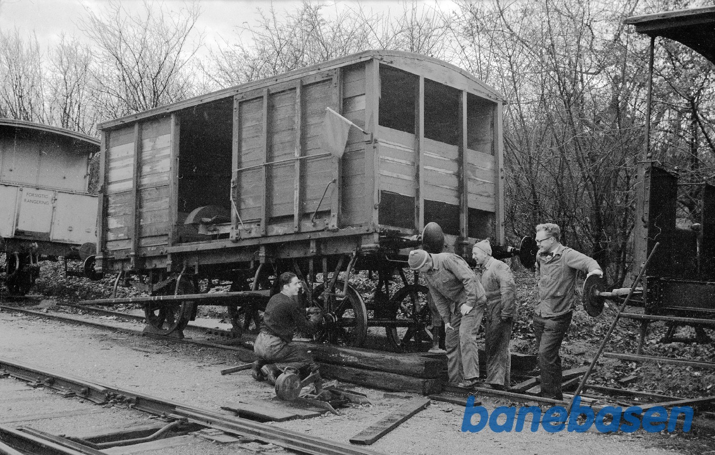 Motiv: | Lukket godsvogn ØSJS E 26 under istandsættelse |