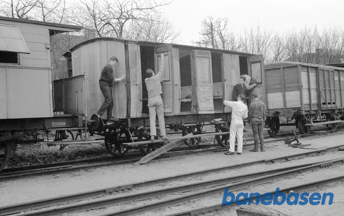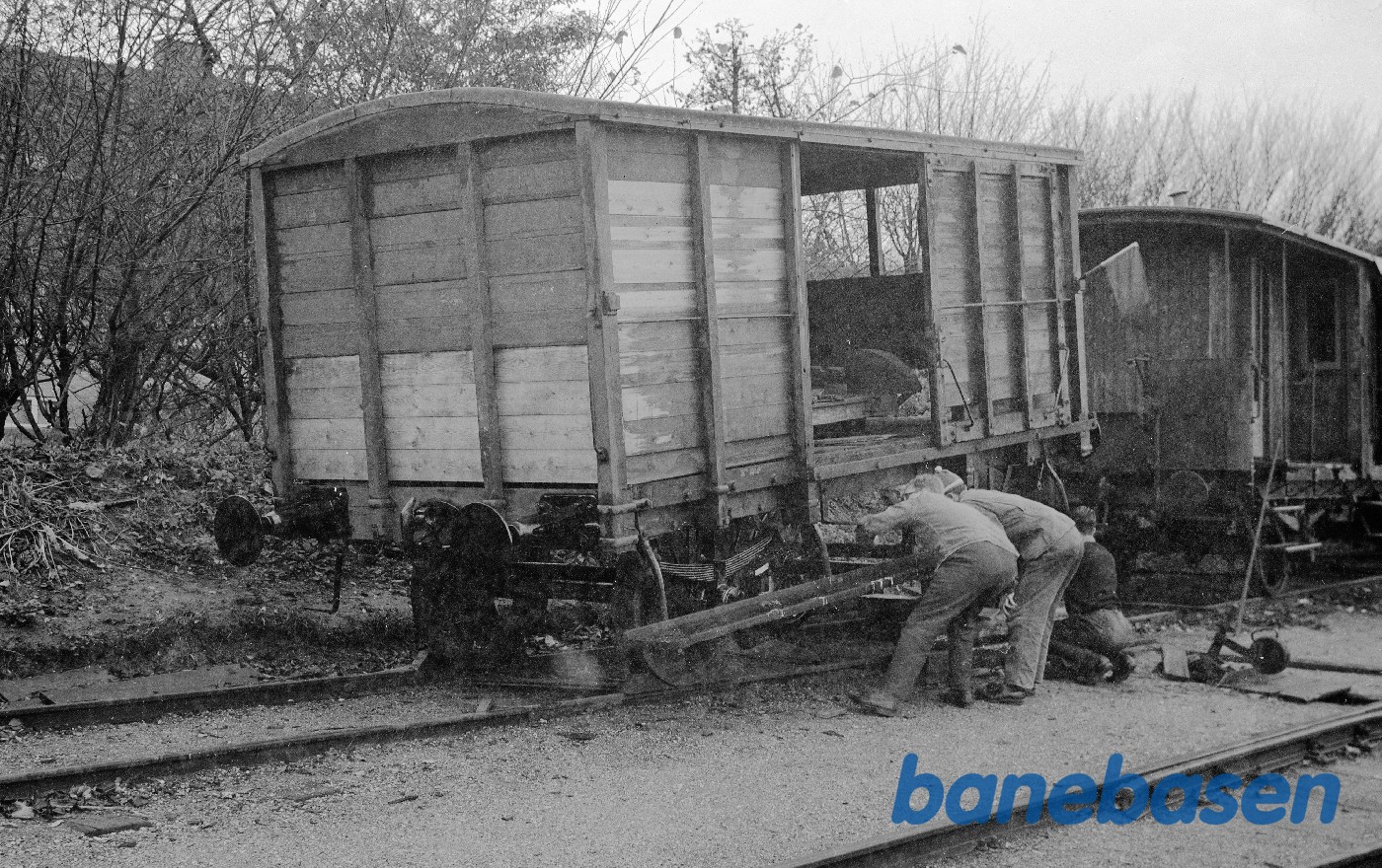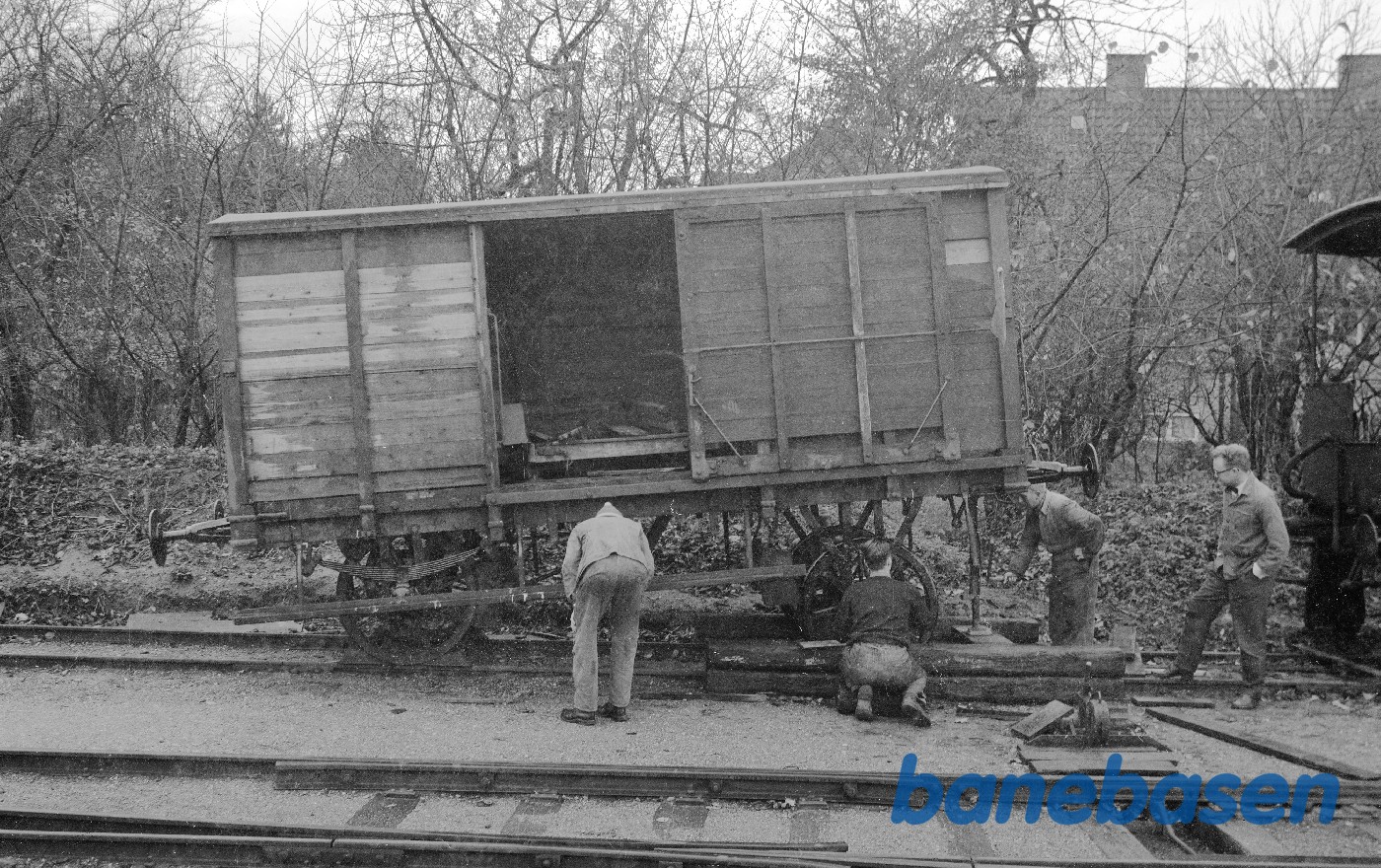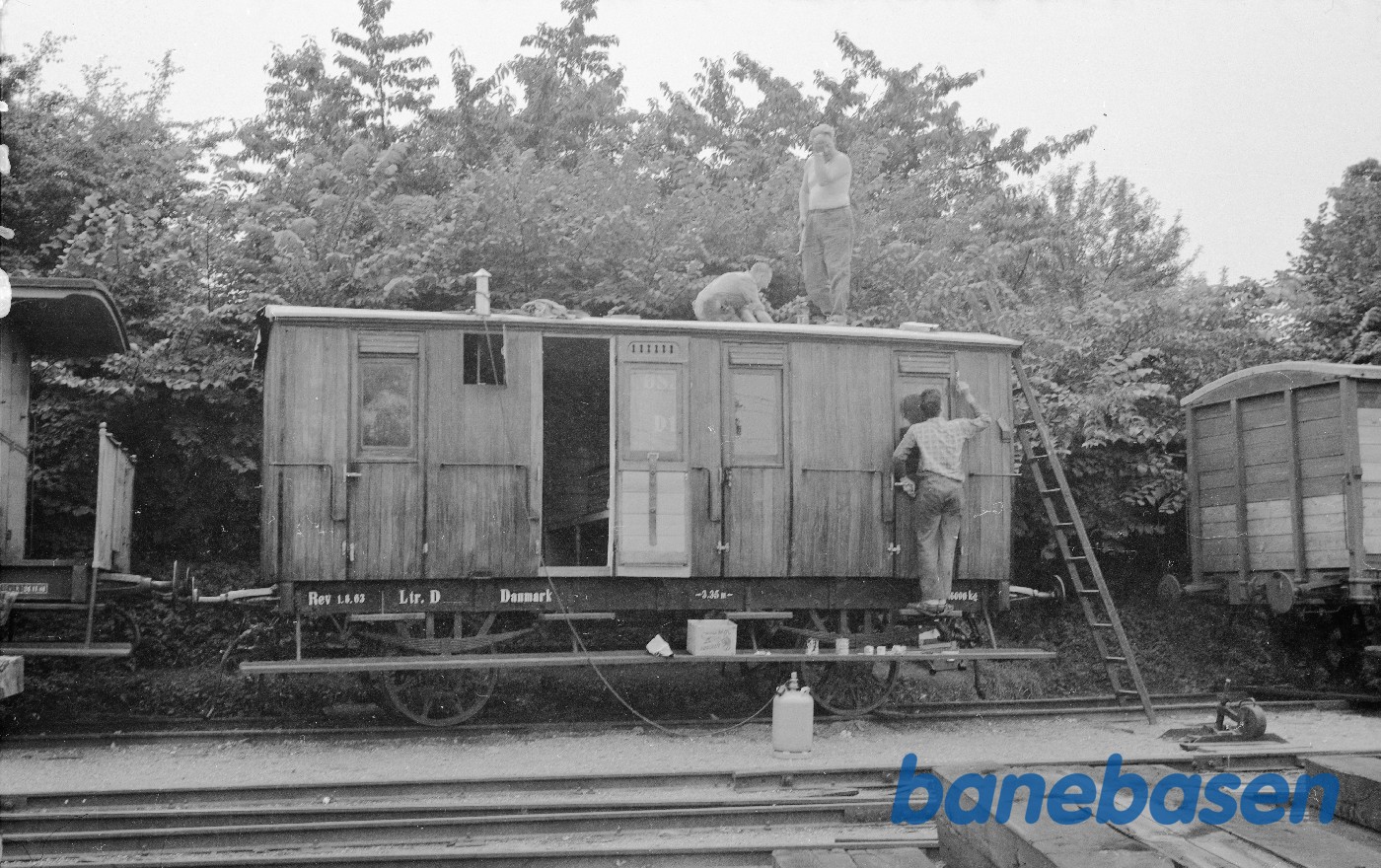 Motiv: | Lukket godsvogn ØSJS E 26 under istandsættelse |