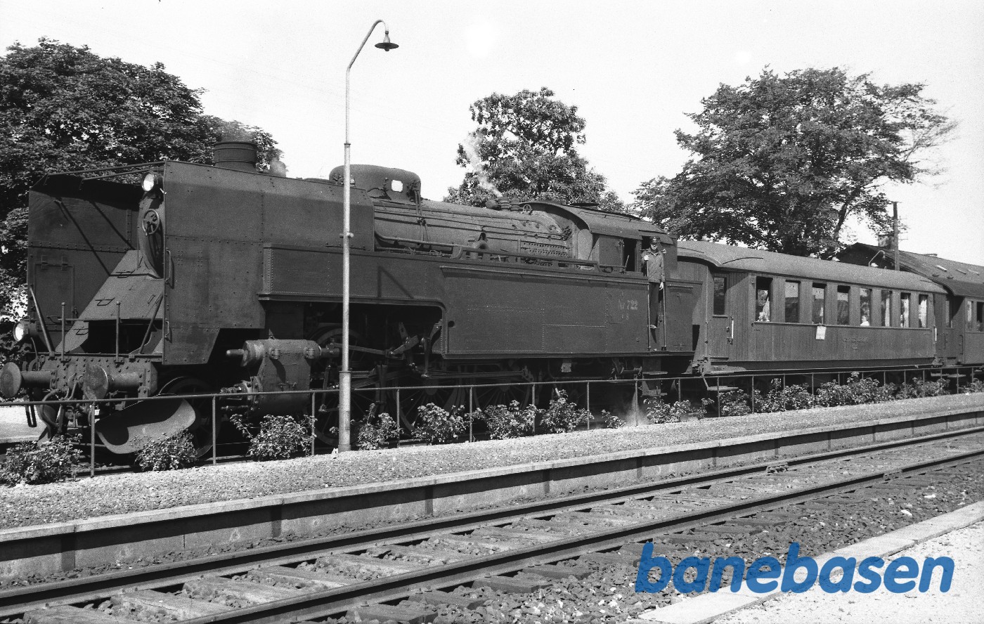 Motiv: | Damplokomotiv S 723 med godstog i lejre |