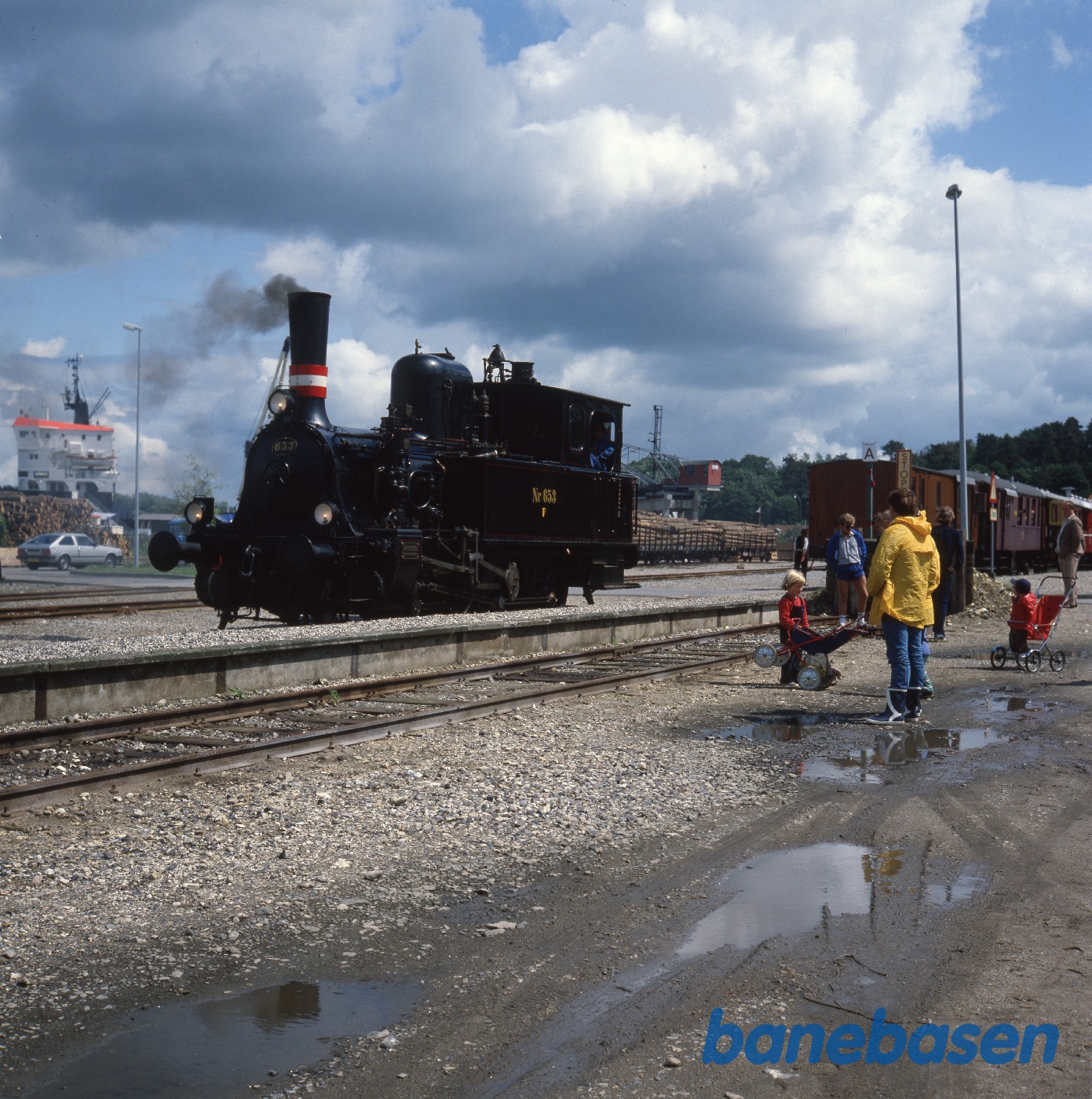 Motiv: | F 653 på havnen med personvogne |