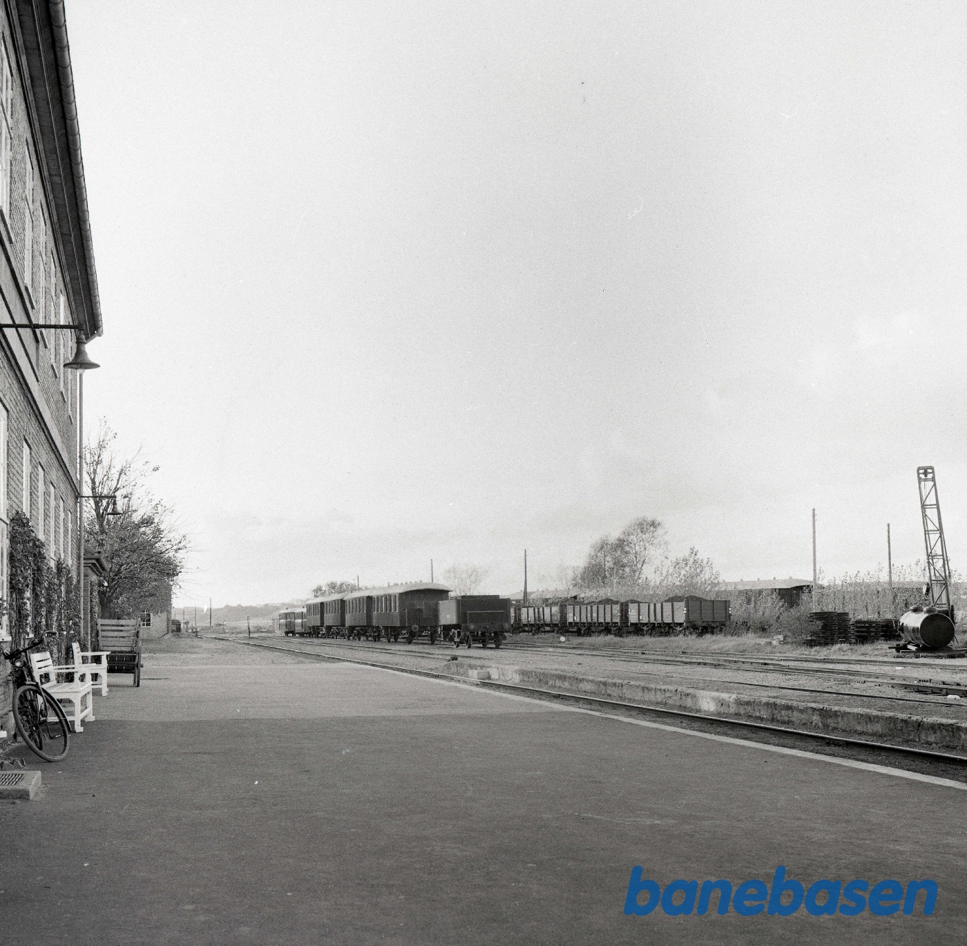 Motiv: | Mariager station med personvogne og motorvogne |