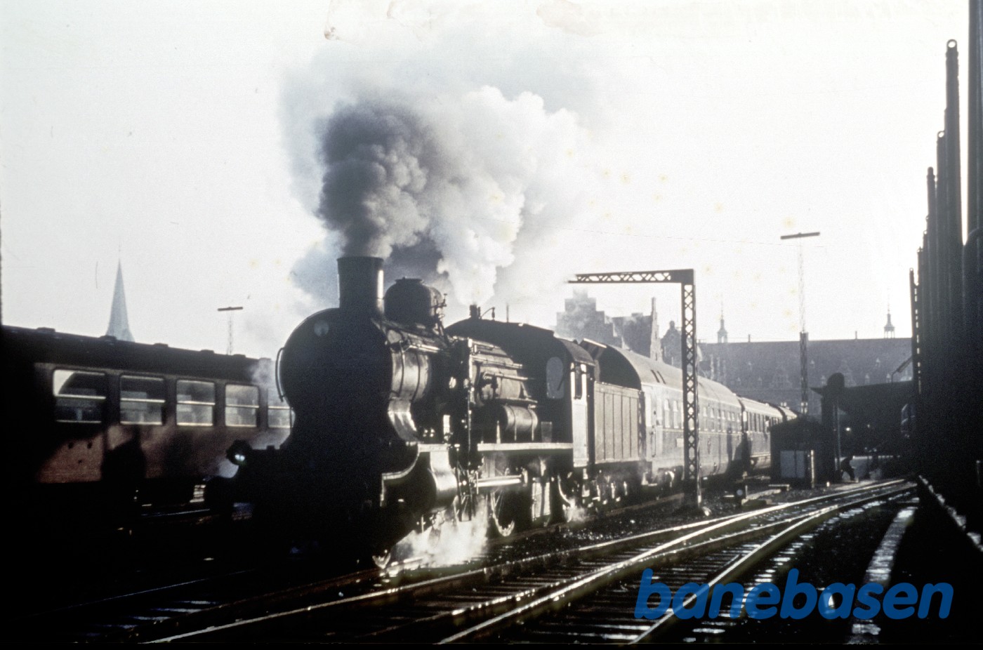 Motiv: | P-maskine afgår med tog 402 med sovevogn og hollandsk personvogn |