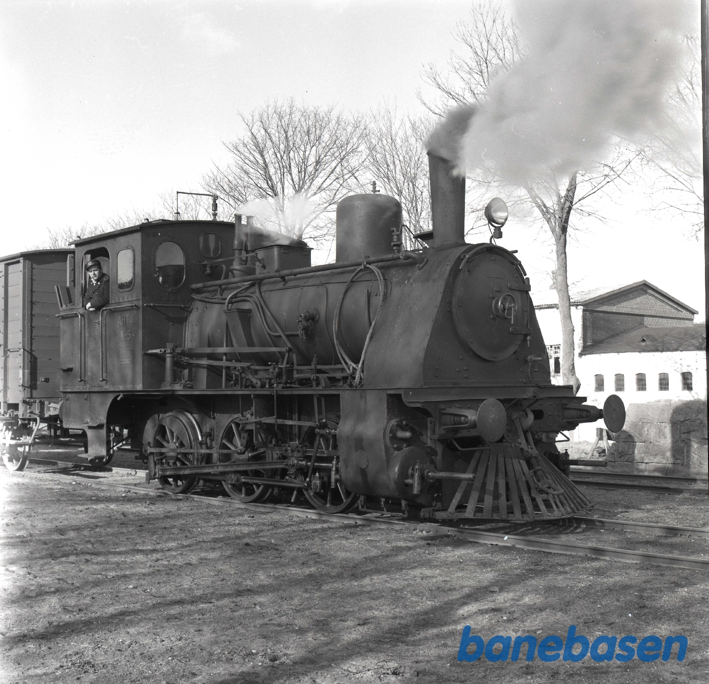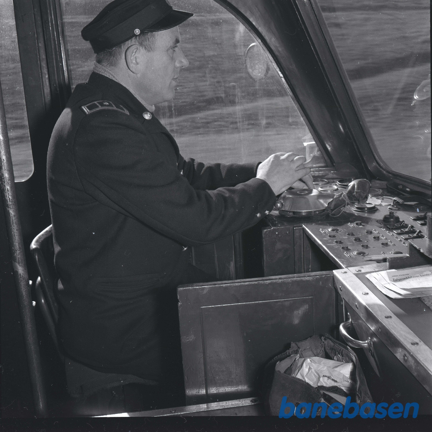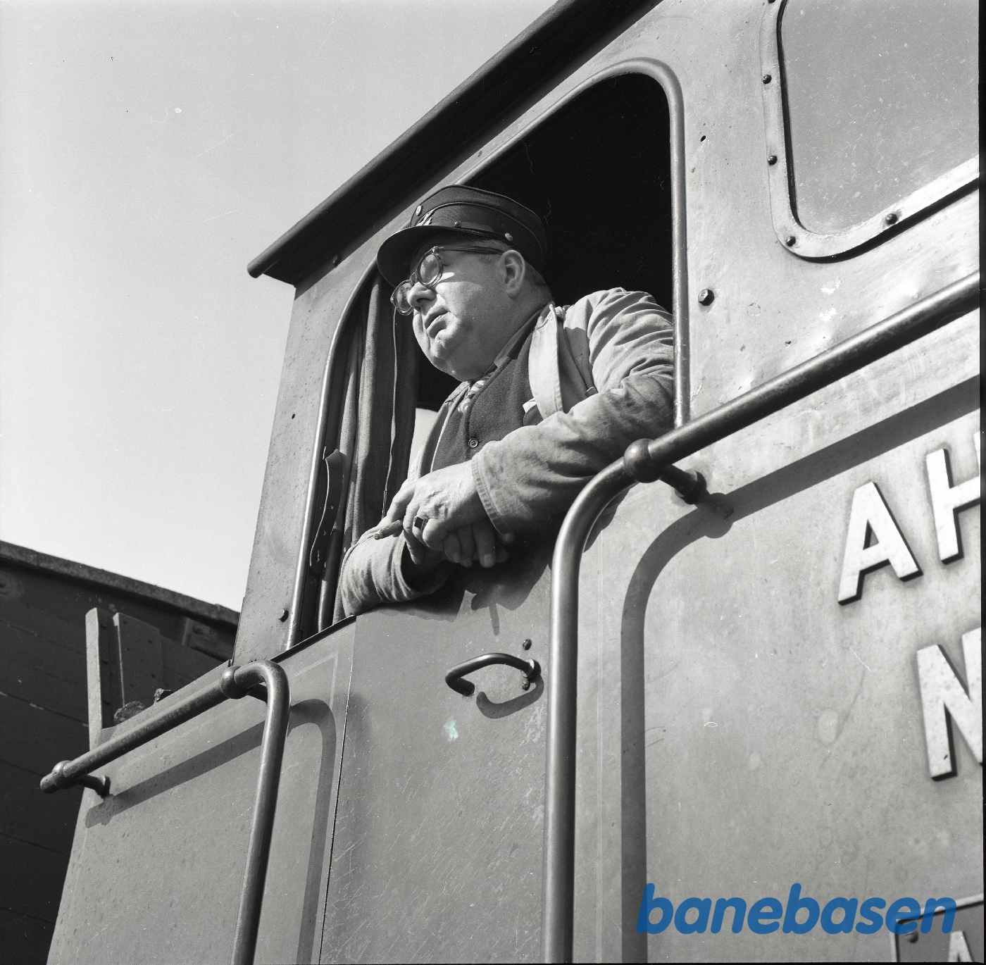 Motiv: | Lokomotivmester Christensen i førerhuset på AHTJ 5 |