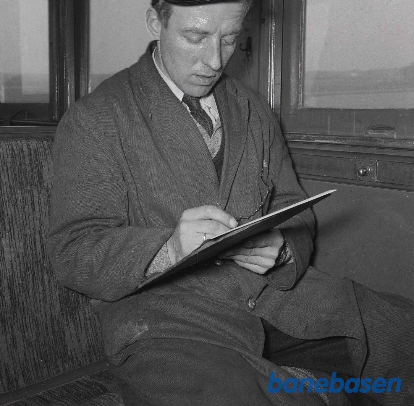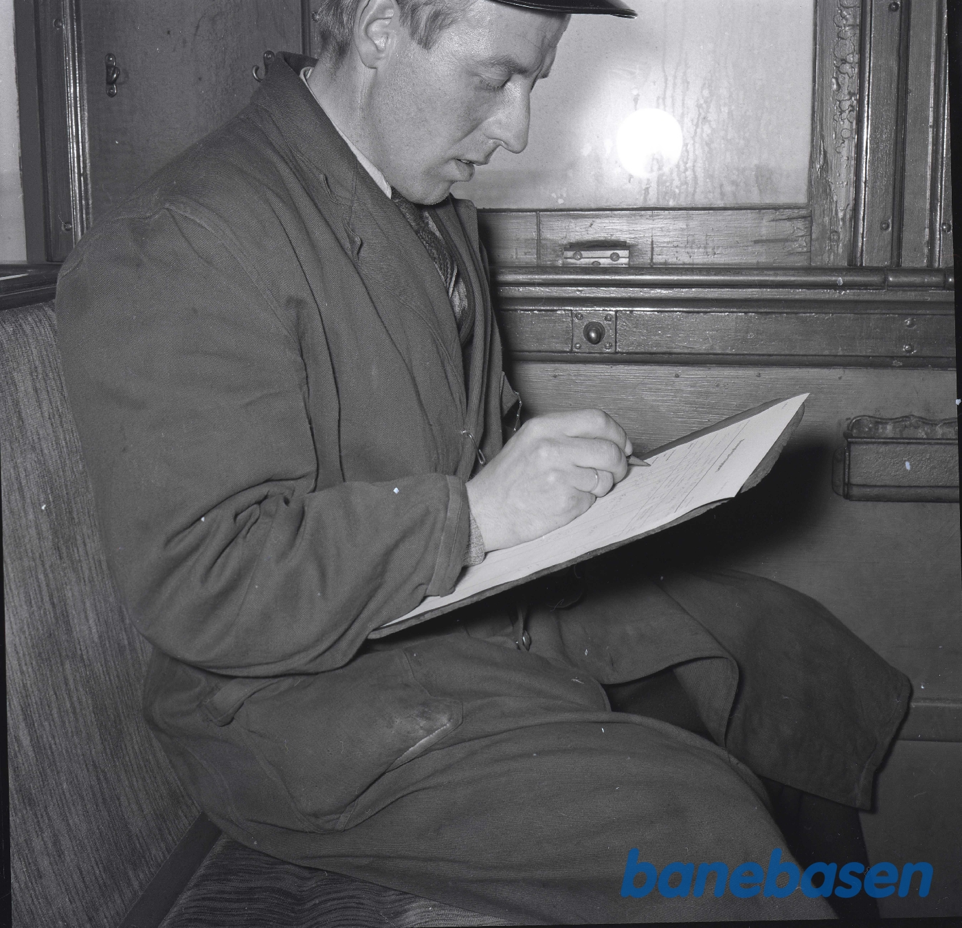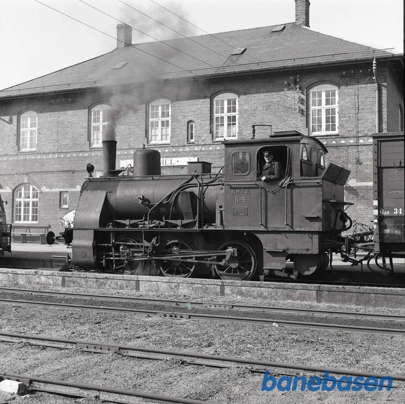 Motiv: | Lokomotivmester Christensen i førerhuset på AHTJ 5 |