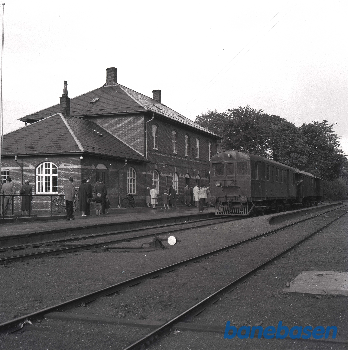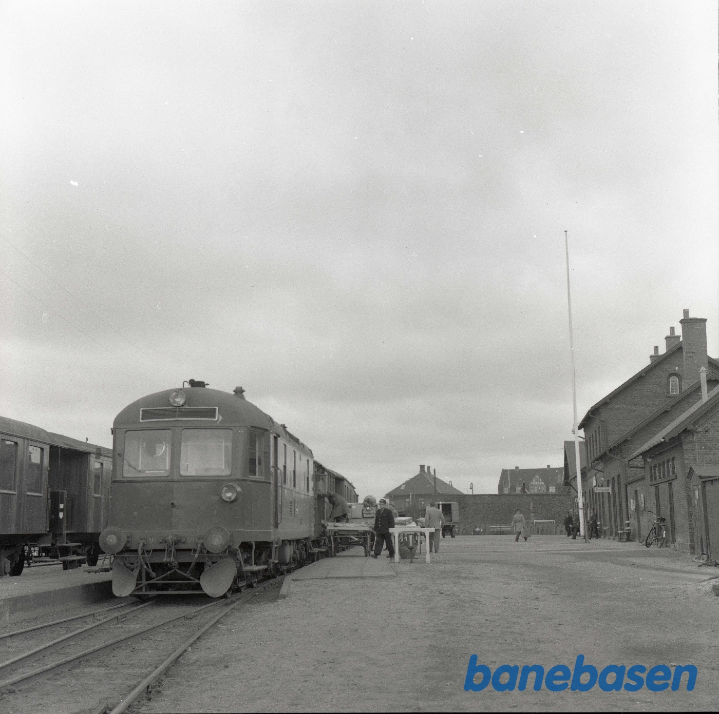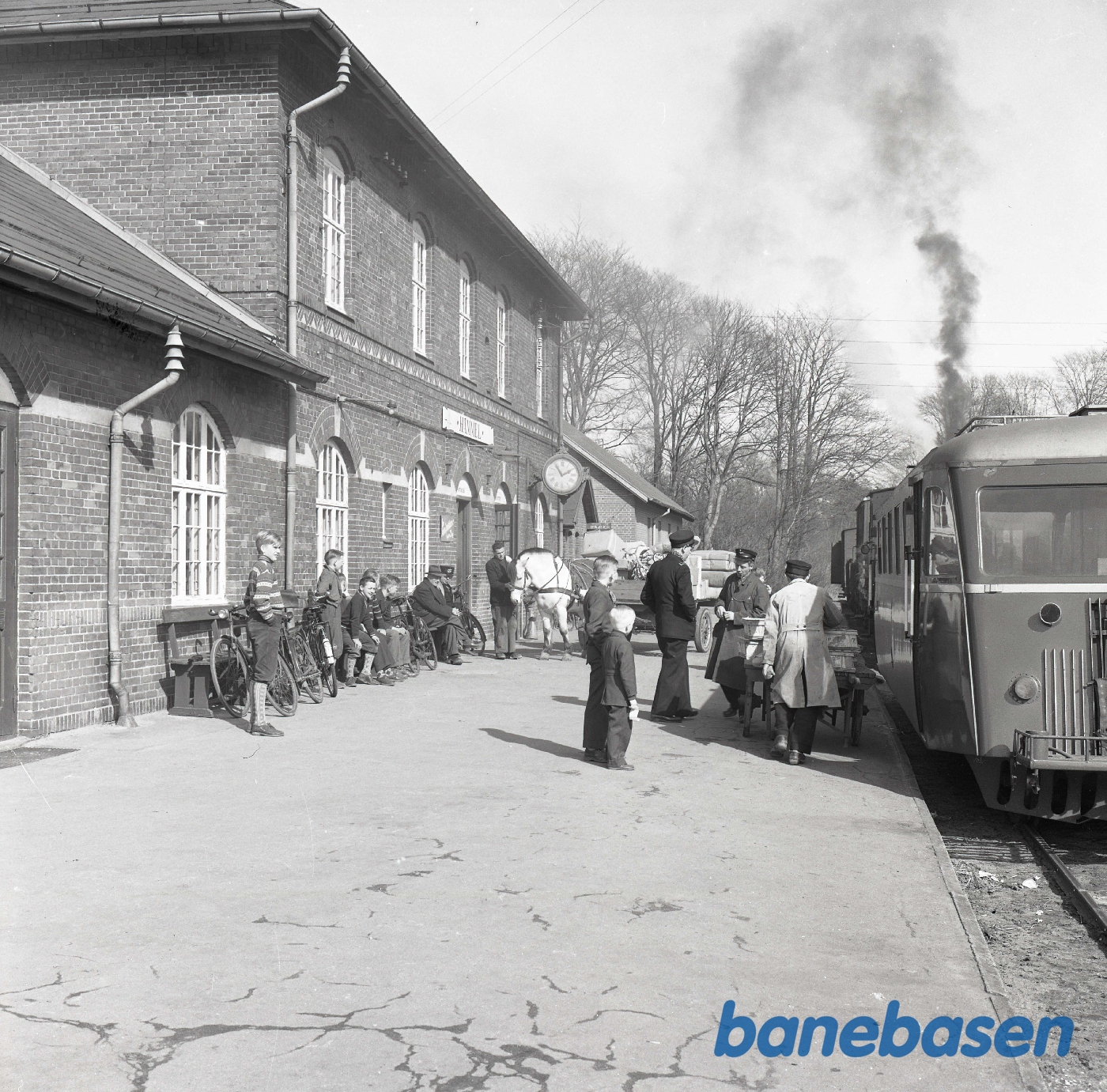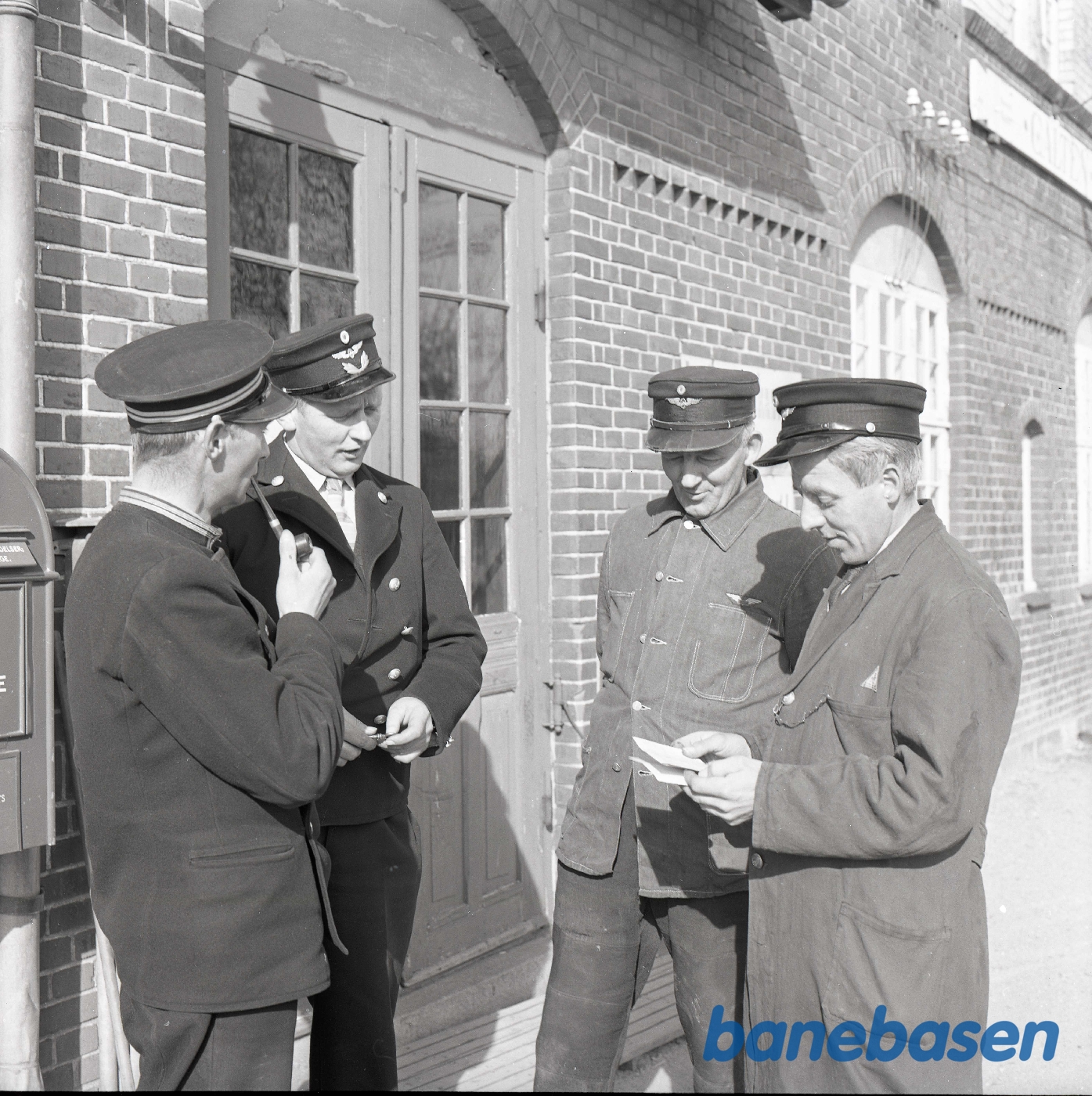 Motiv: | På stationen. Yderst til højre portør Søren Jacobsen |