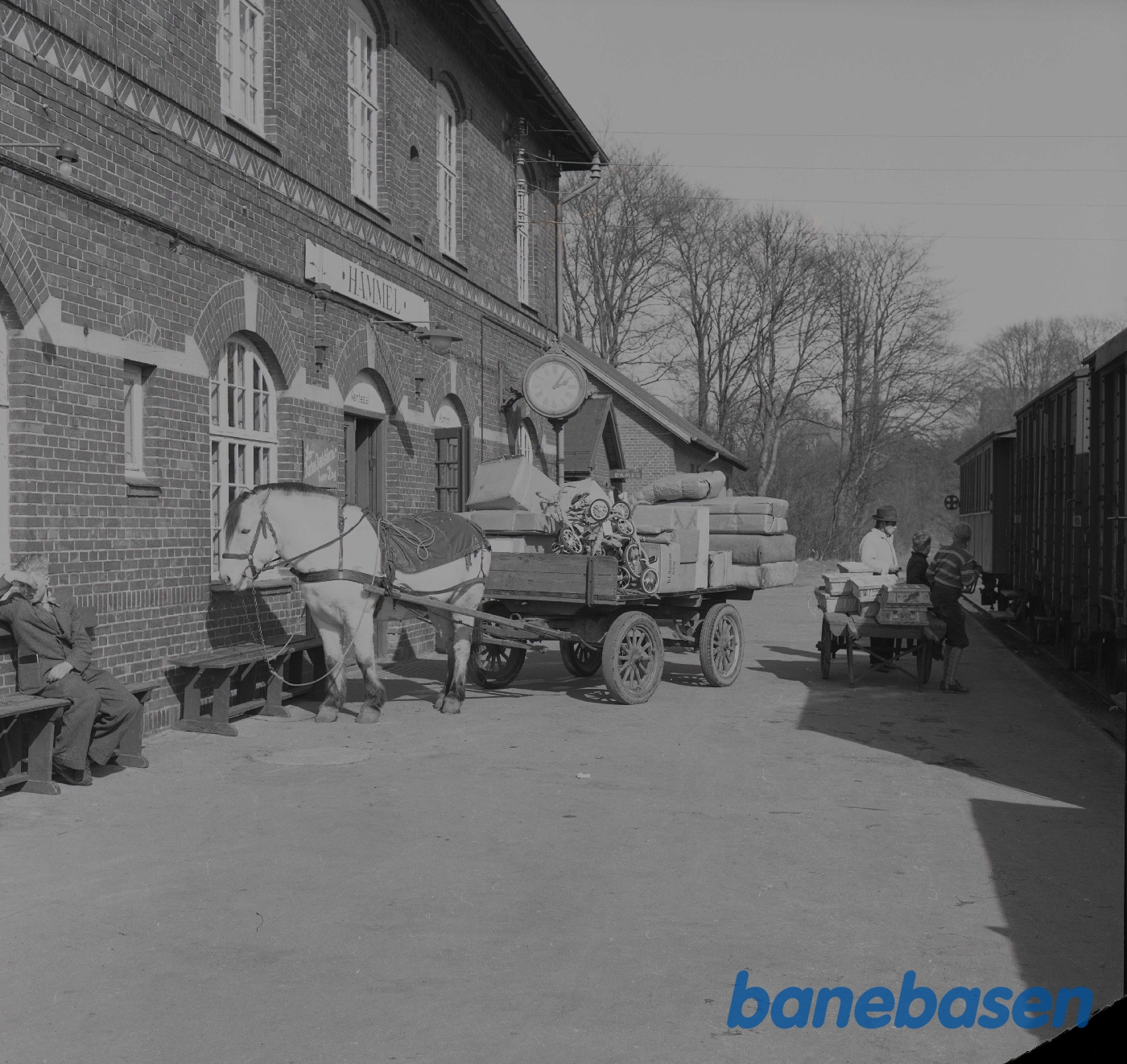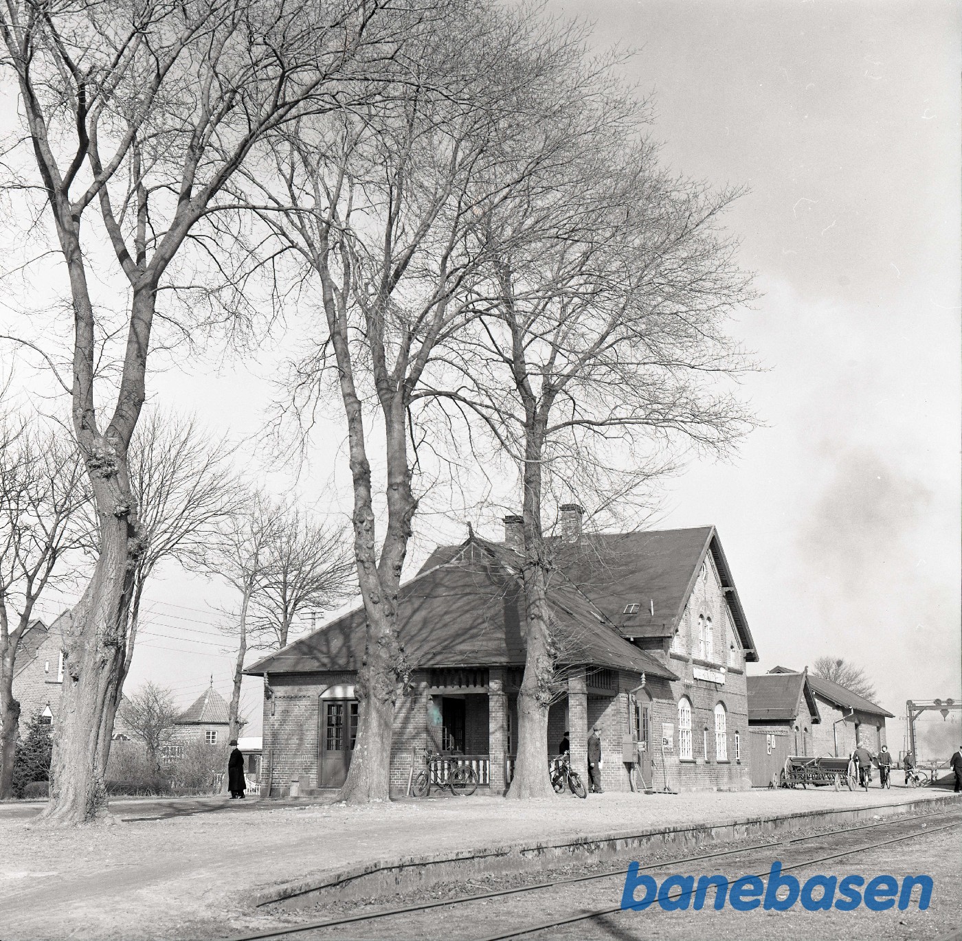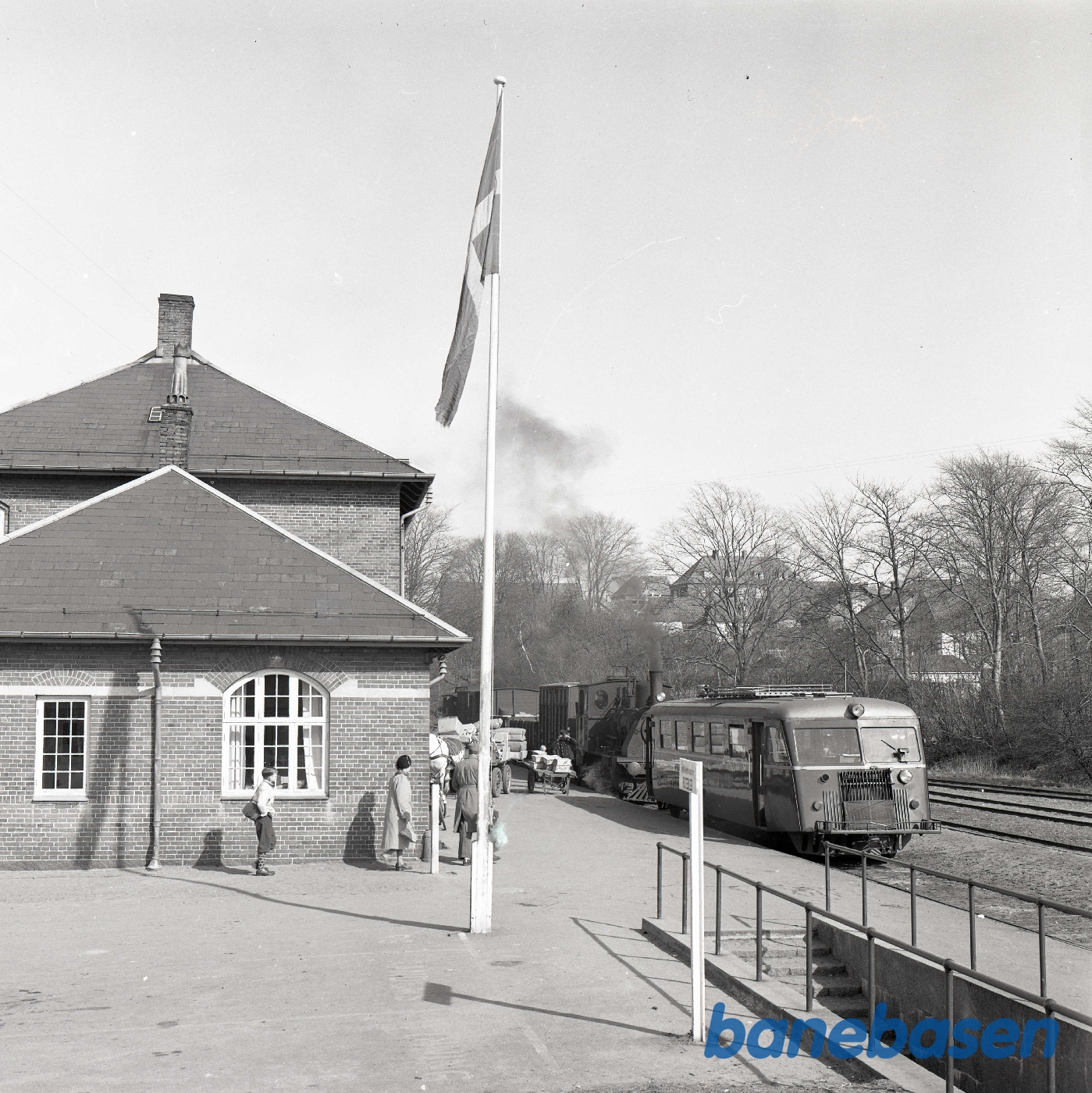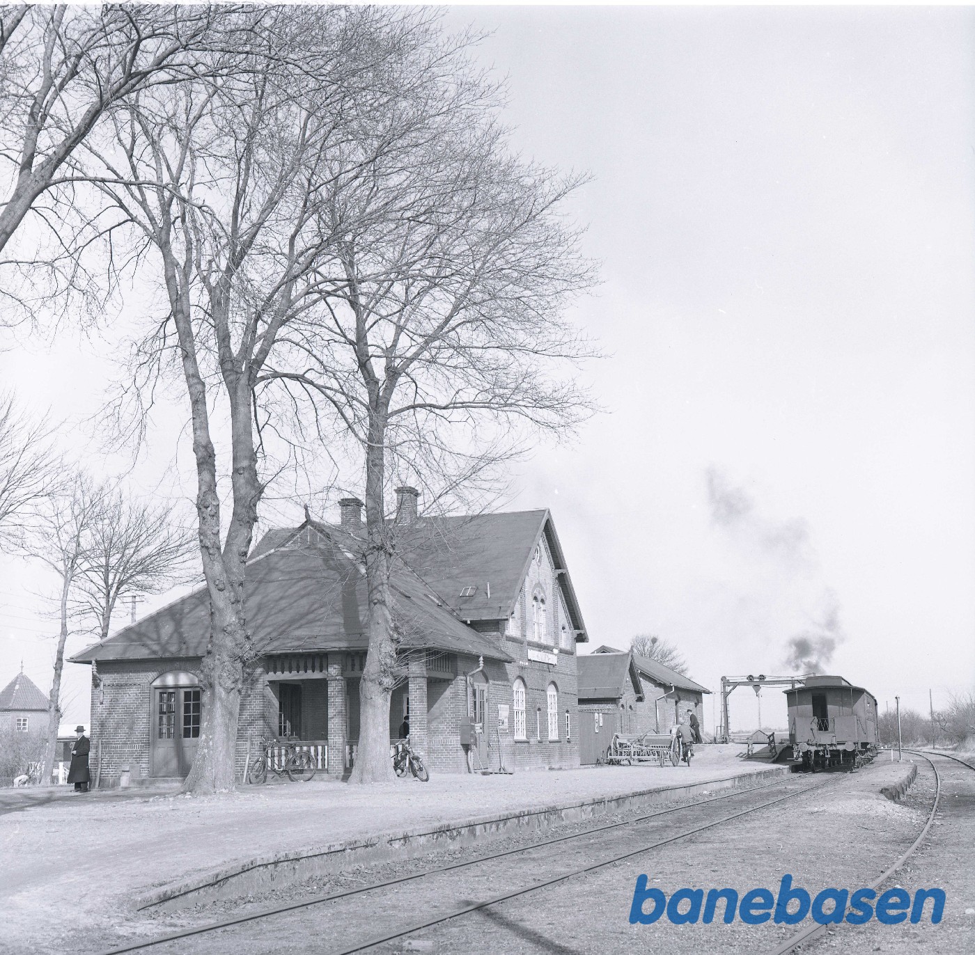 Motiv: | På stationen. Yderst til højre portør Søren Jacobsen |