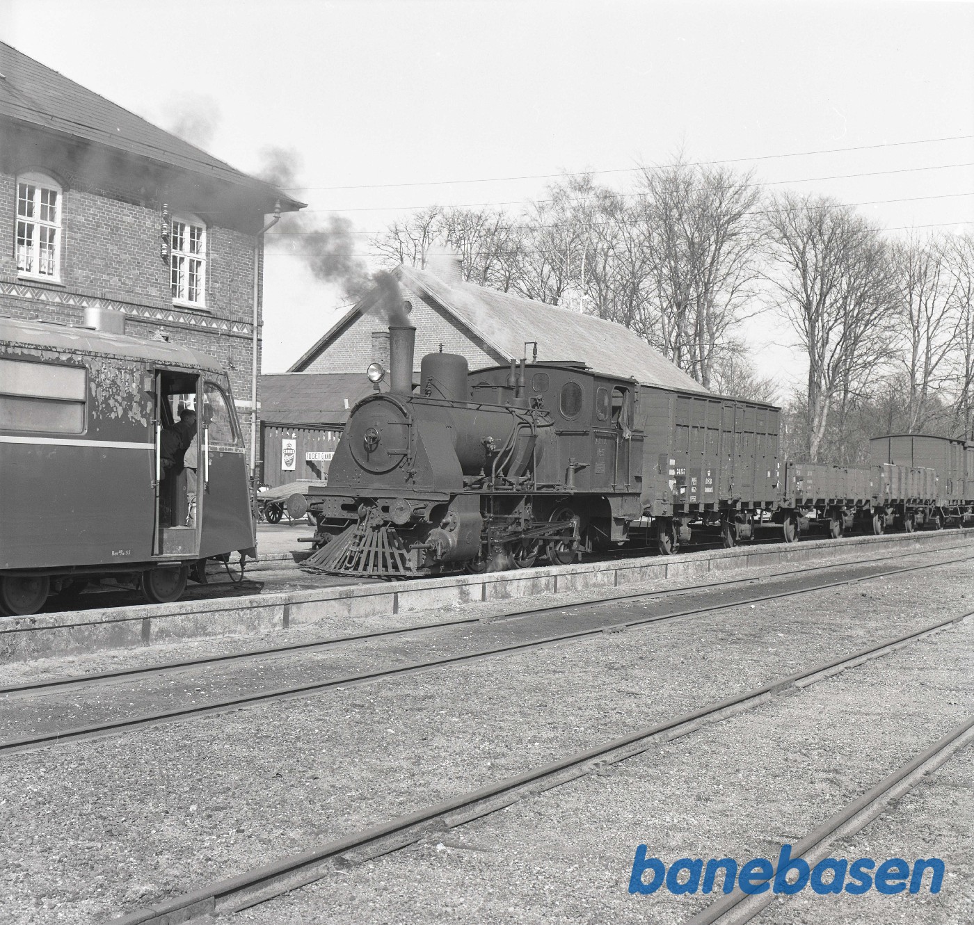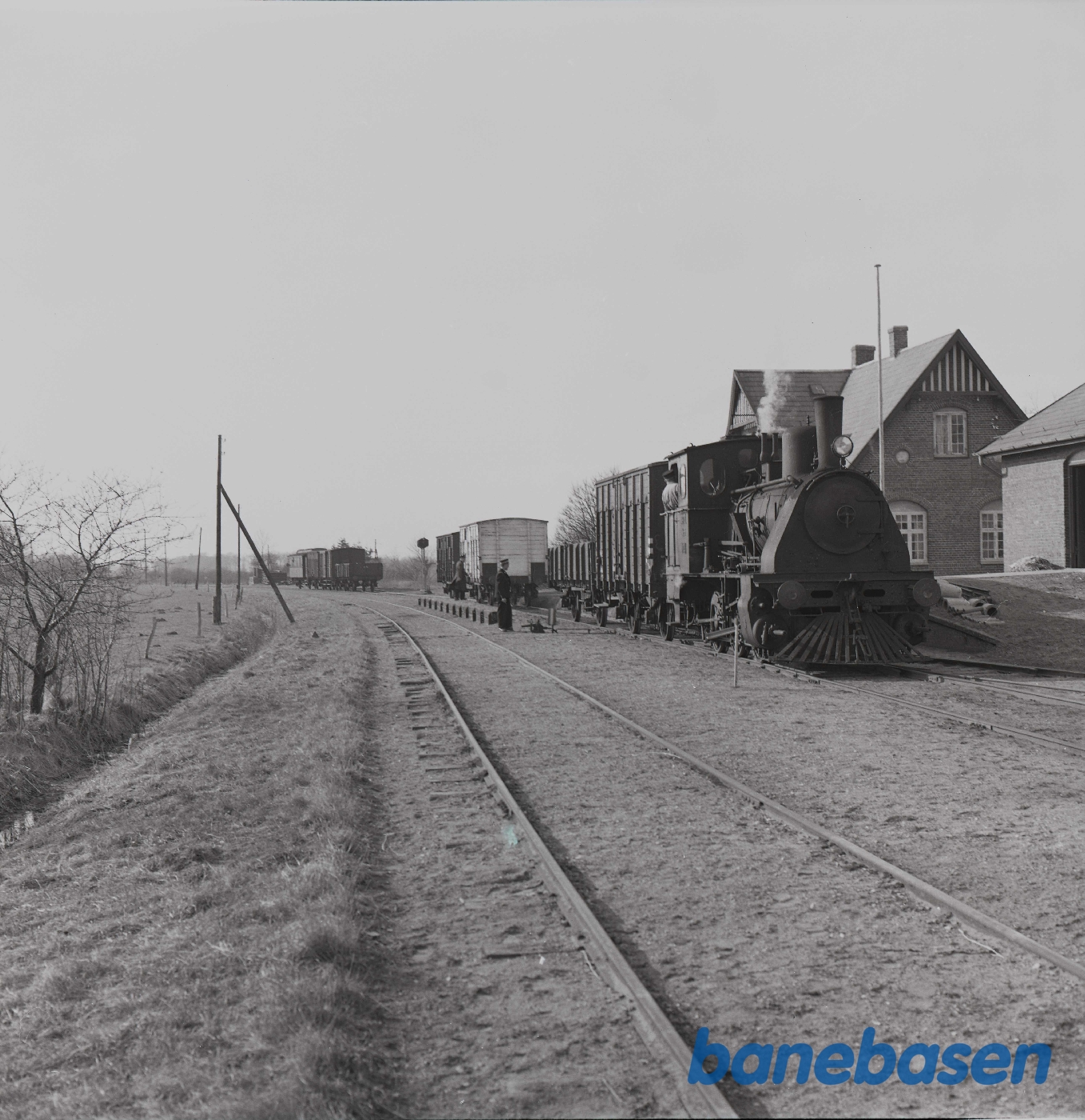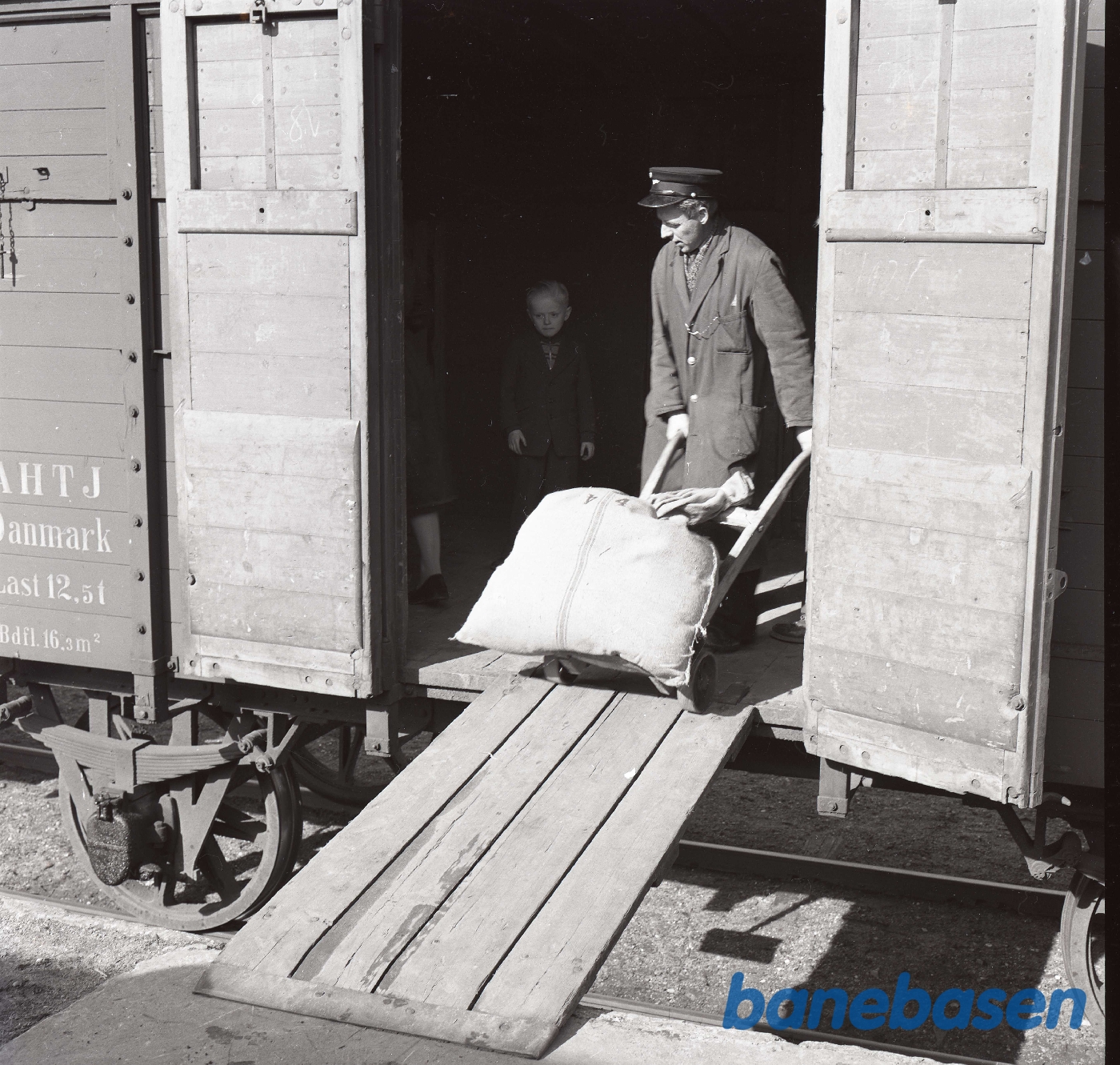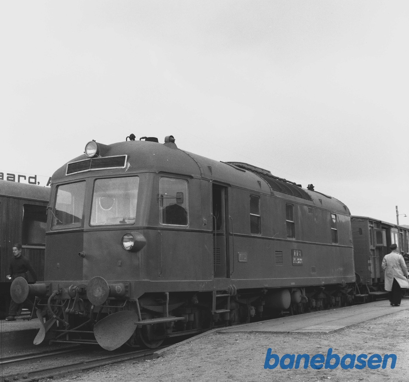 Motiv: | På stationen. Yderst til højre portør Søren Jacobsen |