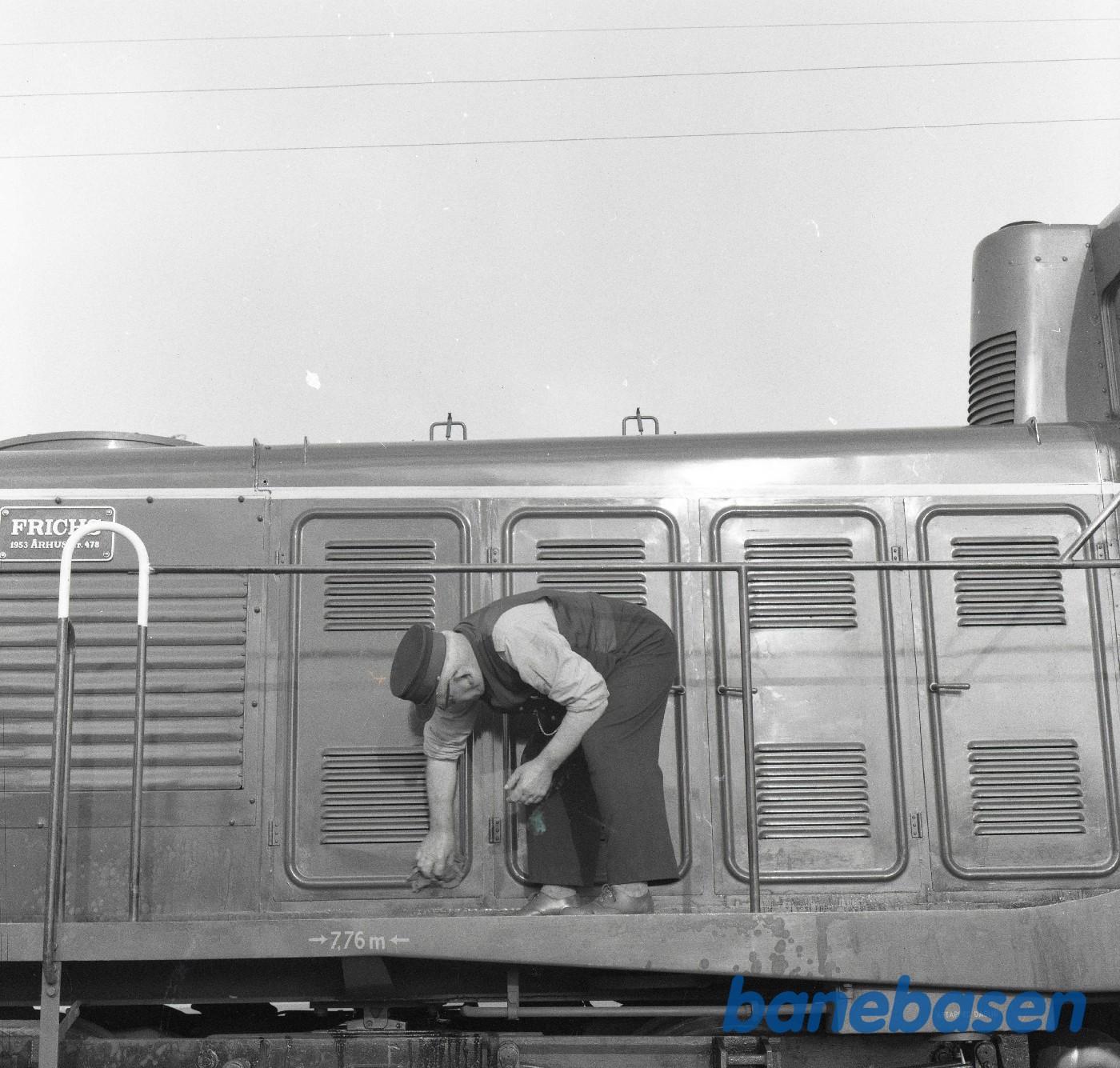 Motiv: | Motorlokomotiv RHJ DL 41 på Hadsund N station. Eftersyn ved motorrummet |