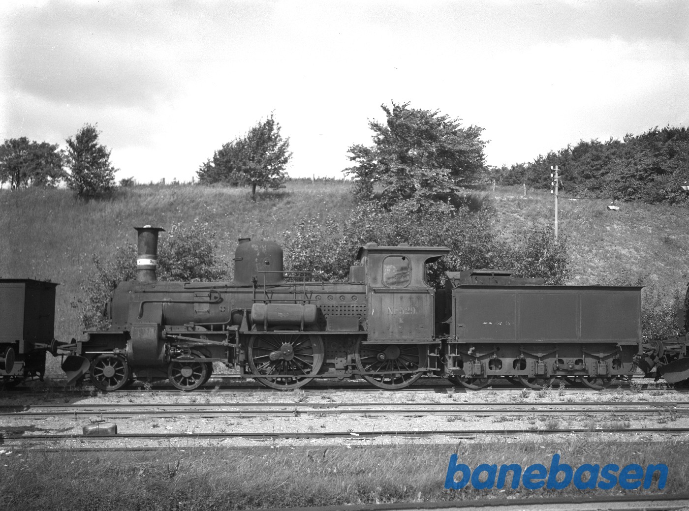 Motiv: | Hensat damplokomotiv DSB K 529 på sidespor på Skanderborg station |