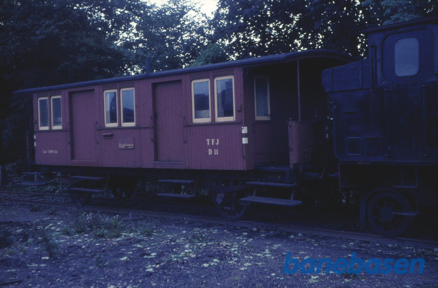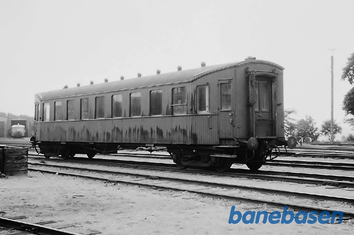 Motiv: | Post-og rejsegodsvogn D 11 + damplokomotiv nr. 7 eller 8 |