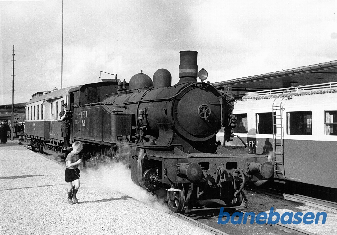| Motiv: | Det lejede skinnebustog ved perron - med cykel på bagagebæreren - købtes året efter af NPMB |