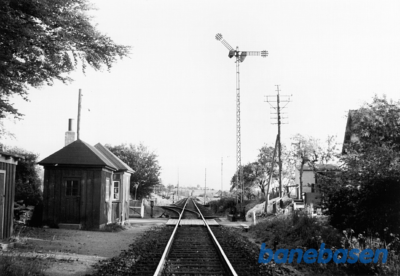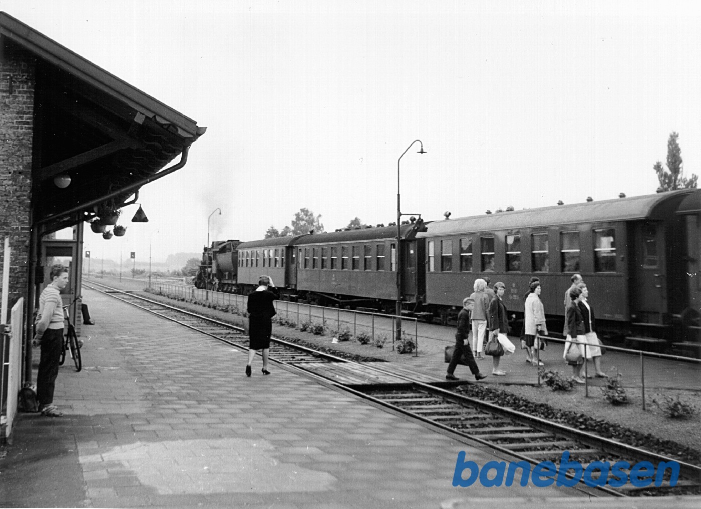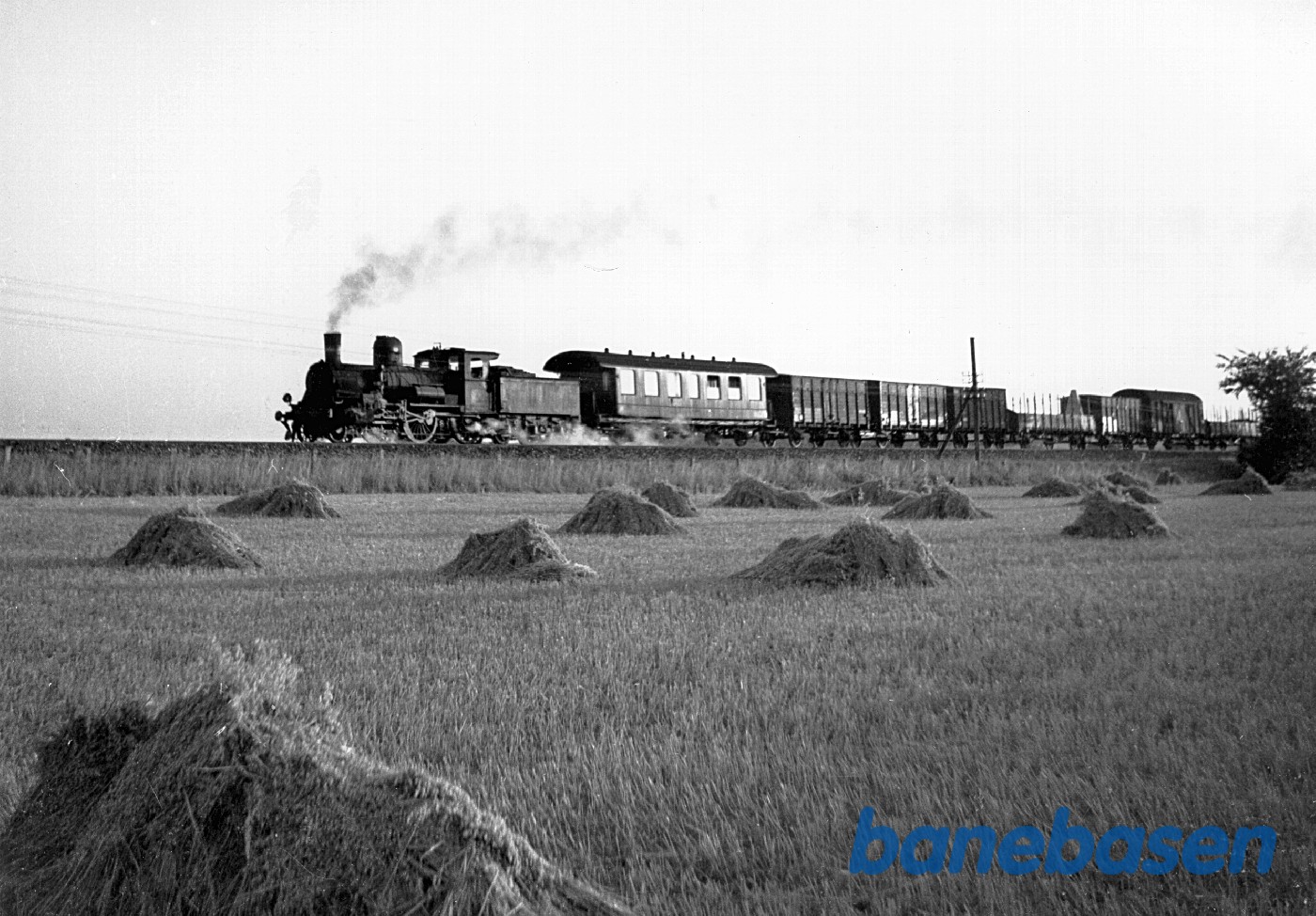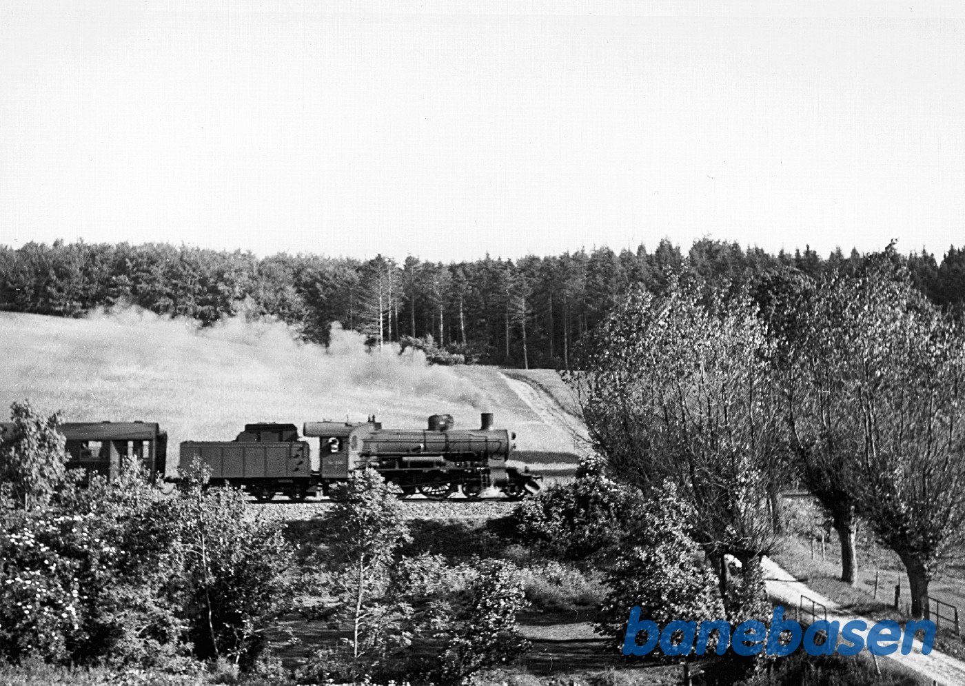 Motiv: | Tog mod Hillrød med tre toakslede DSB-vogne (CX-CV-CU) og en pakvogn kort efter afgang fra Kagerup |