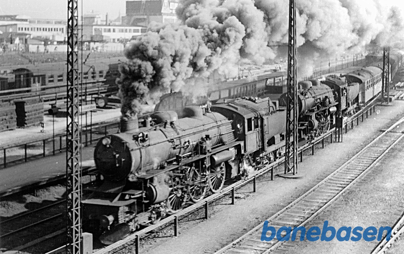 Motiv: | De to lokomotiver holder ved maskindepotet |