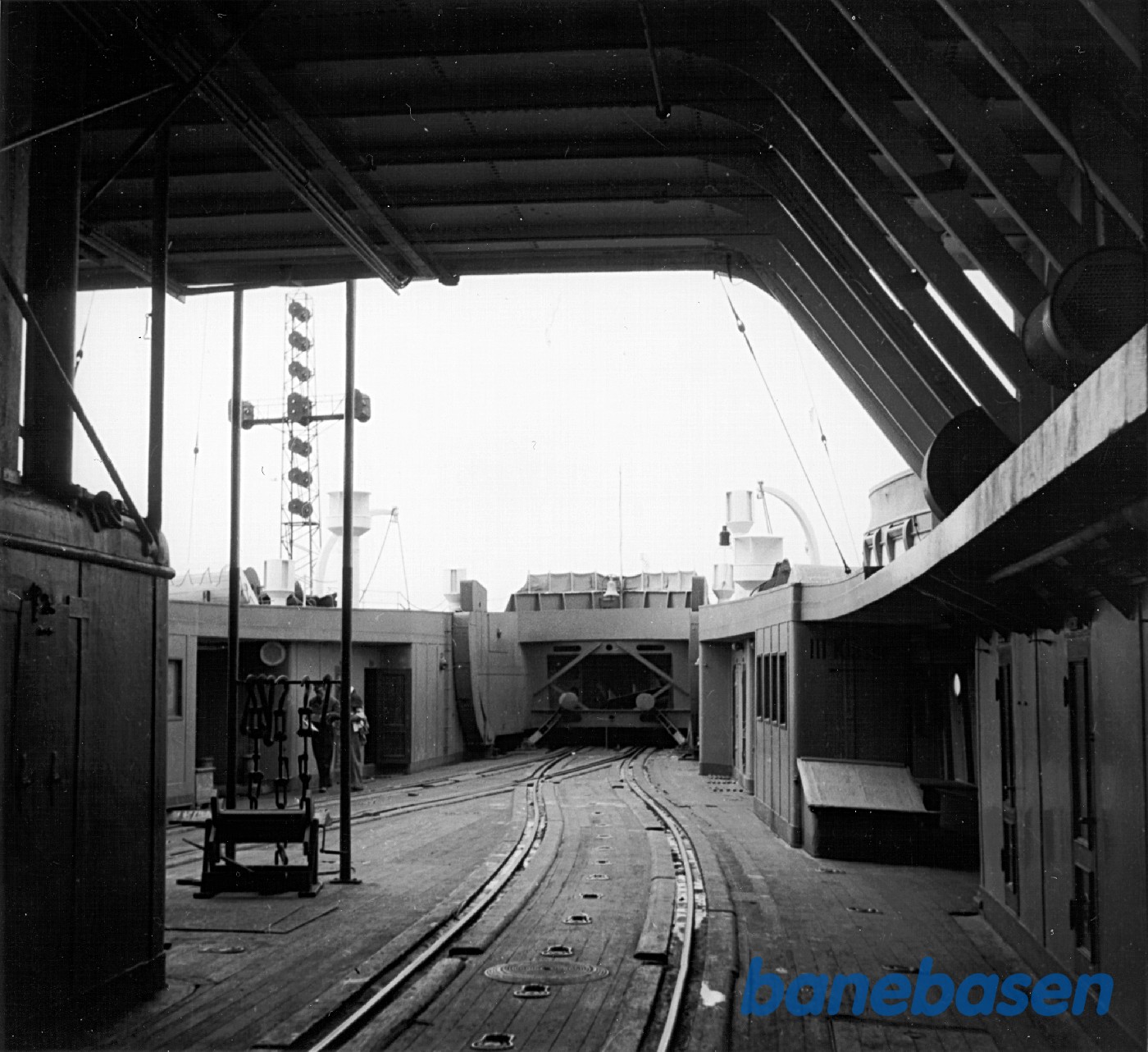 Motiv: | Dampfærgen "Prins Christian" - vogndæk mod stævnen |