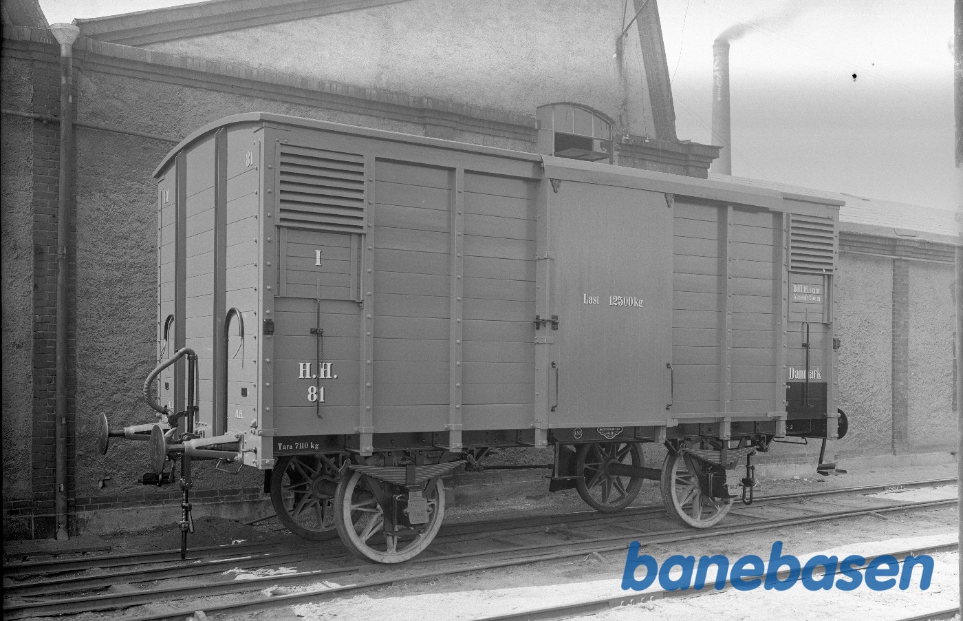 Fabriksfoto af lukket godsvogn til Hjørring Hørby Jernbane