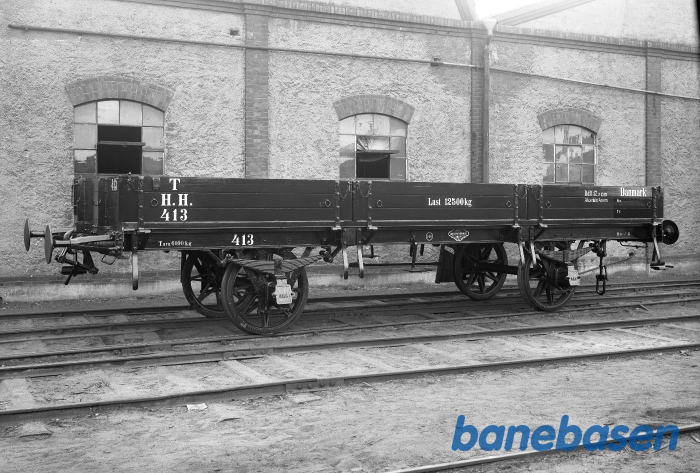 Fabriksfoto af åben godsvogn med bremsehus til Hjørring Hørby Jernbane