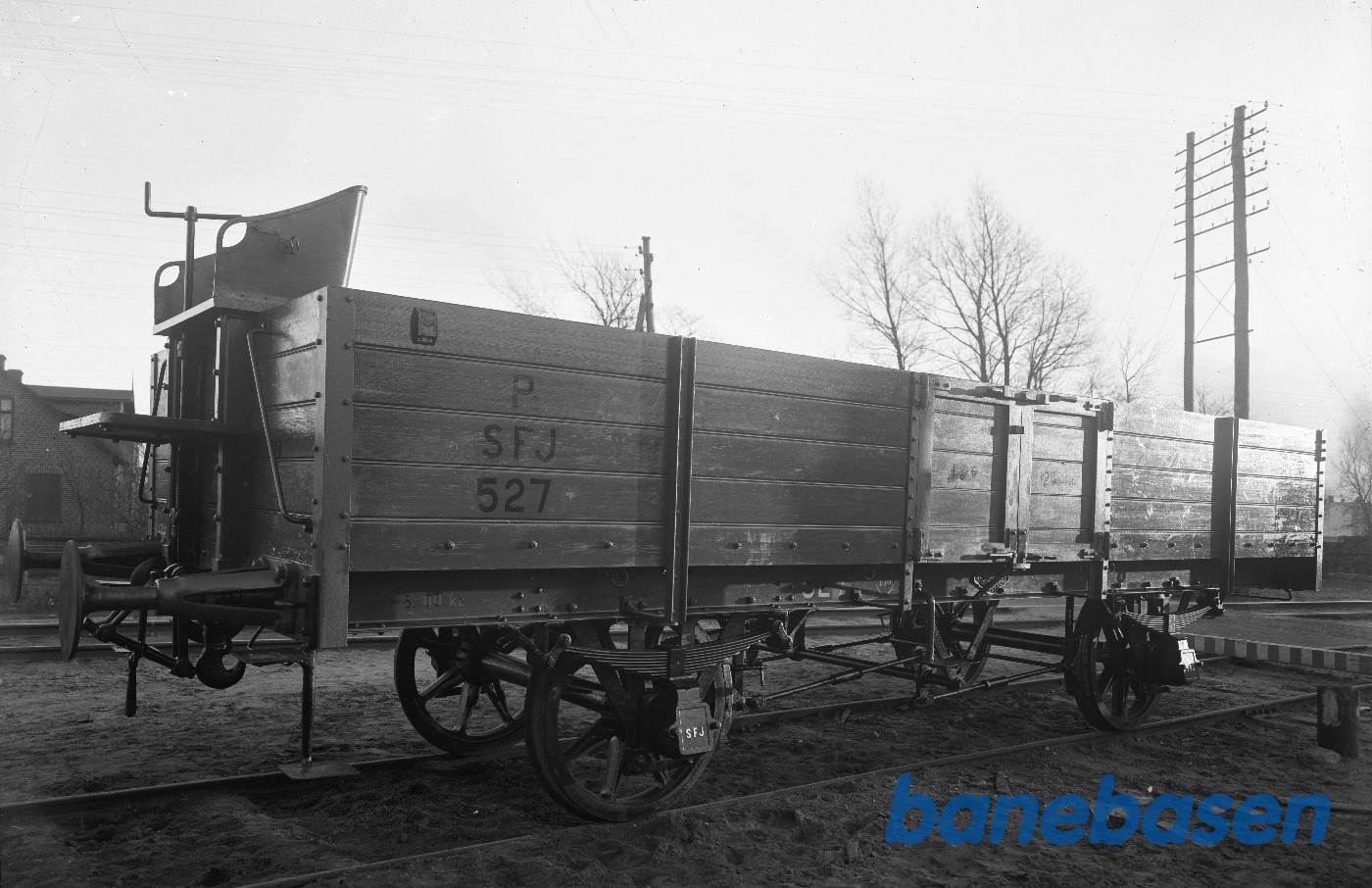 Motiv:Fabriksfoto af åben godsvogn med bremser til Sydfyenske Jernbaner