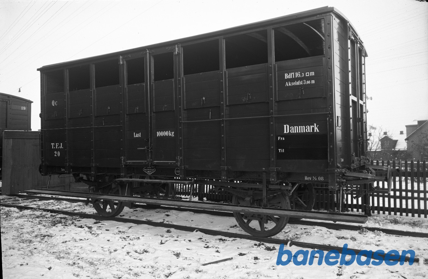 Fabriksfoto af åben godsvogn til Sydfyenske Jernbaner