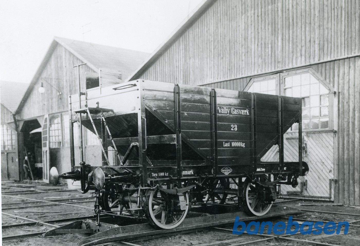Fabriksfoto af selvtømmende kulvogn til Valby Gasværk