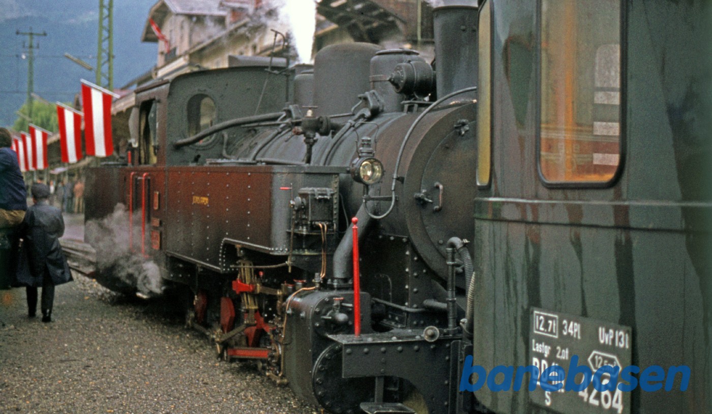Damptoget på smalsporsbanen er netop ankommet fra Egg