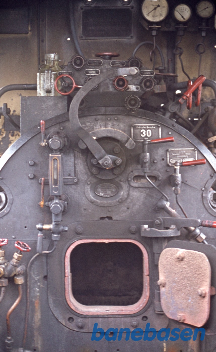 Motiv:Førerpladsen på damplokomotiv på maskindepotet for smalsporsmateriel