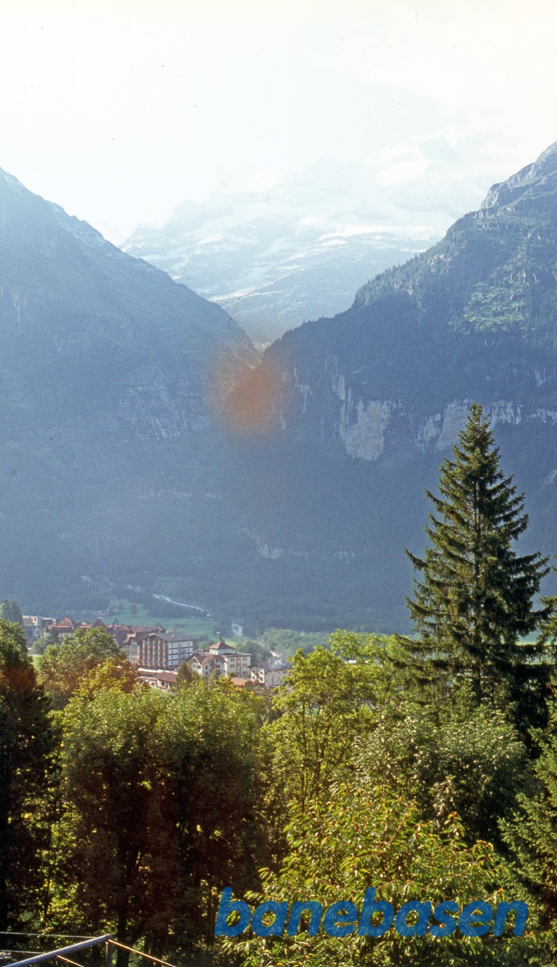 Motiv:Udsigten fra vandrehjemmet op mod Jungfraujoch i skyerne