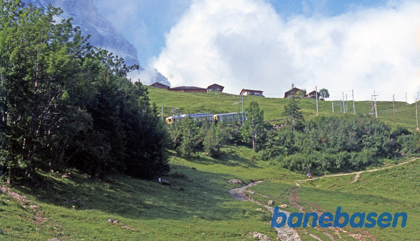 Motiv:De 2 tog på vej op til Kleine Scheidegg kører med kort afstand