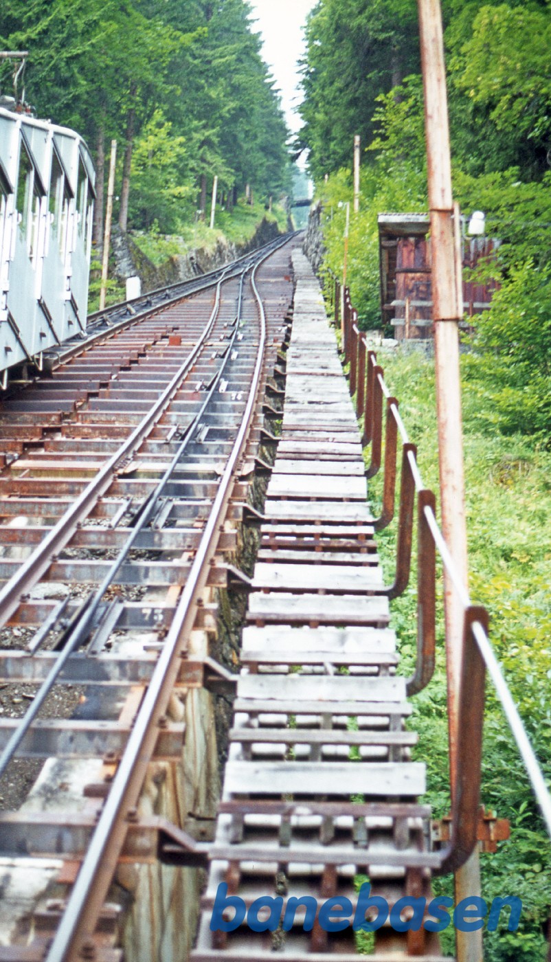 Motiv:Kabelbanen fra Leuterbrunnen op til Grütschalp, hvor man skifter til en sporvogn