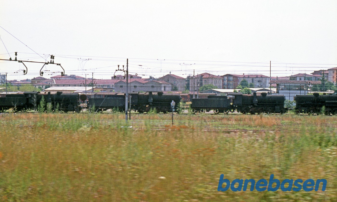 Motiv:Hele opstillingsområdet med en lang række damplokomotiver