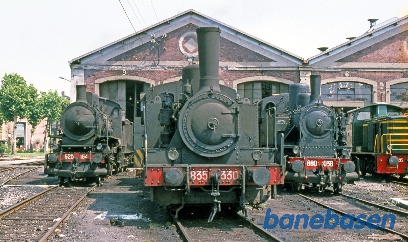 Motiv:3 damplokomotiver foran remisen