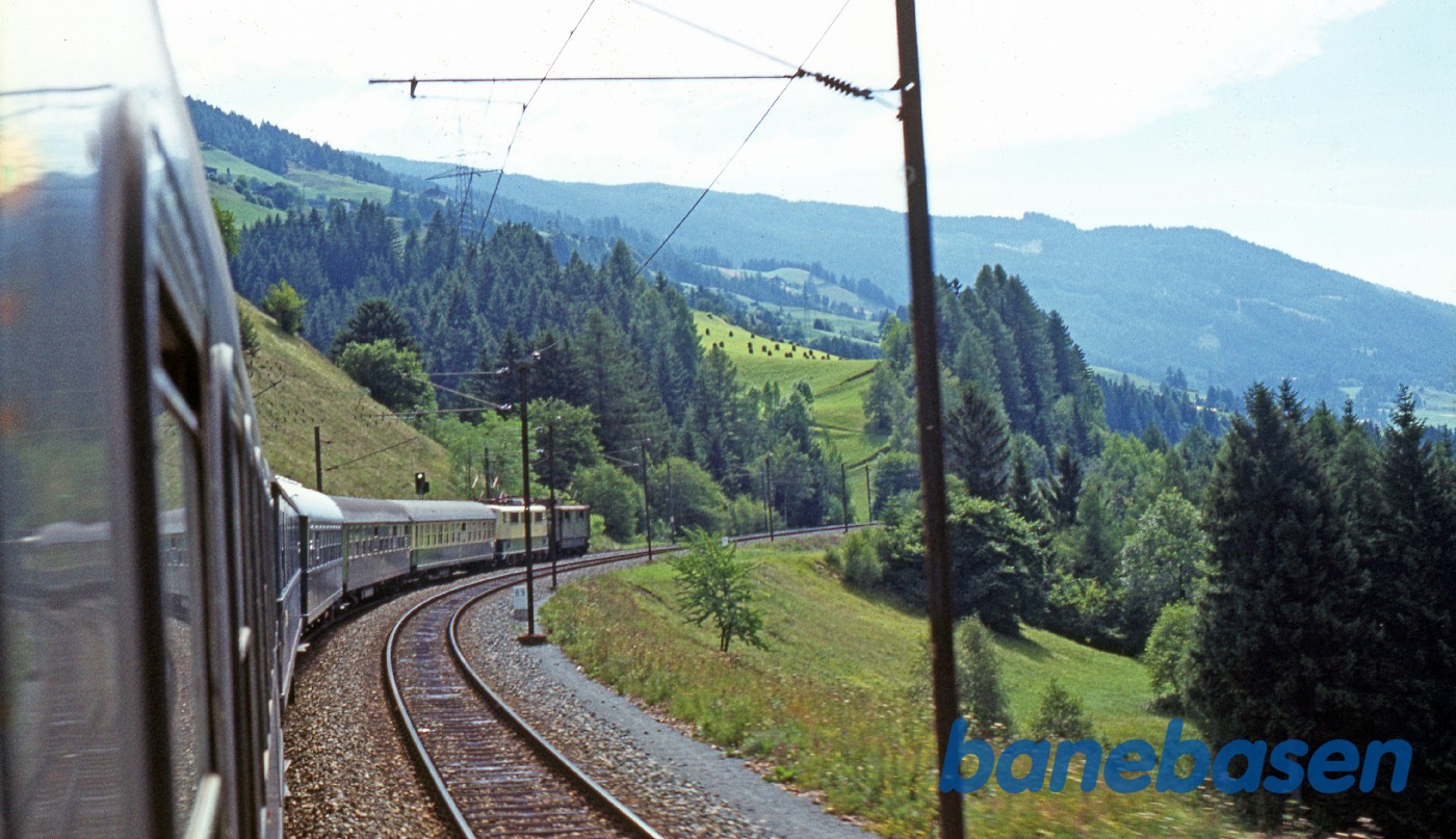 Motiv:Persontoget snor sig op ad bjerget fra Insbruck til Brenner passet